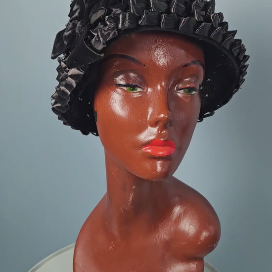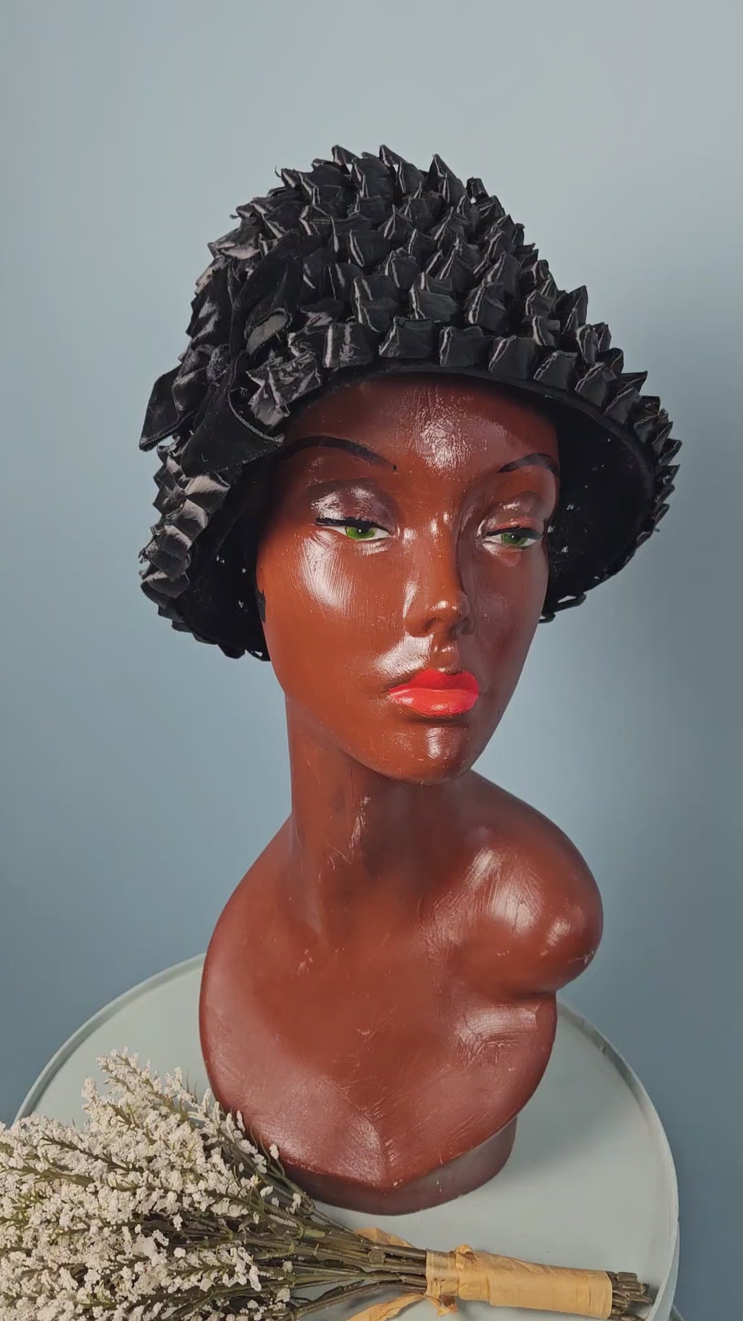 A beautifully sculptural 1960s Straw Bucket Hat that perfectly captures the era’s love of texture, form, and understated elegance. Crafted from richly woven, high-texture folded straw, this piece features a structured bucket silhouette with distinctive detailing that adds depth and architectural interest.