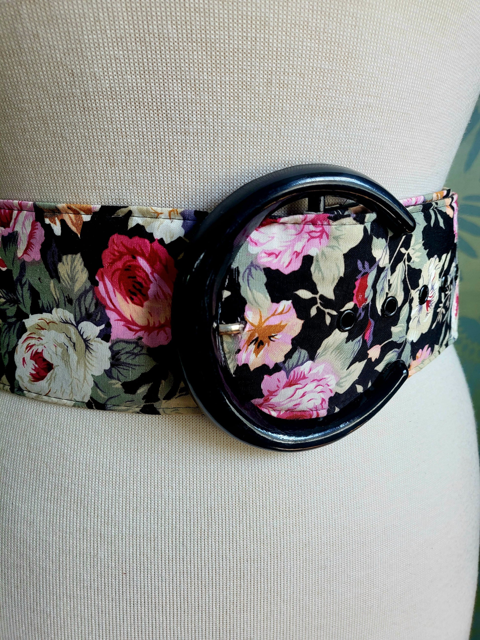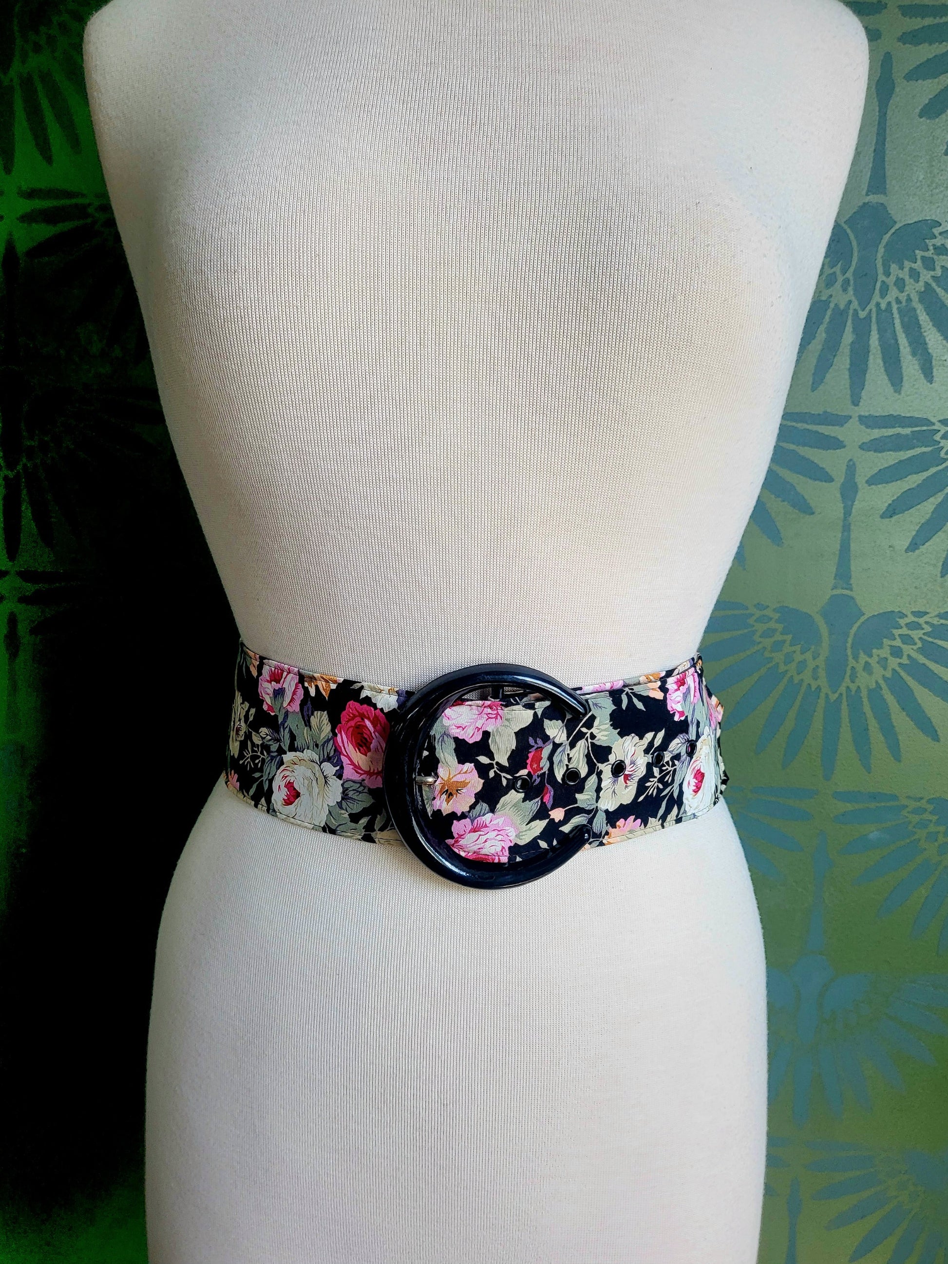 Dark Floral Wide Belt with Black Horseshoe Buckle