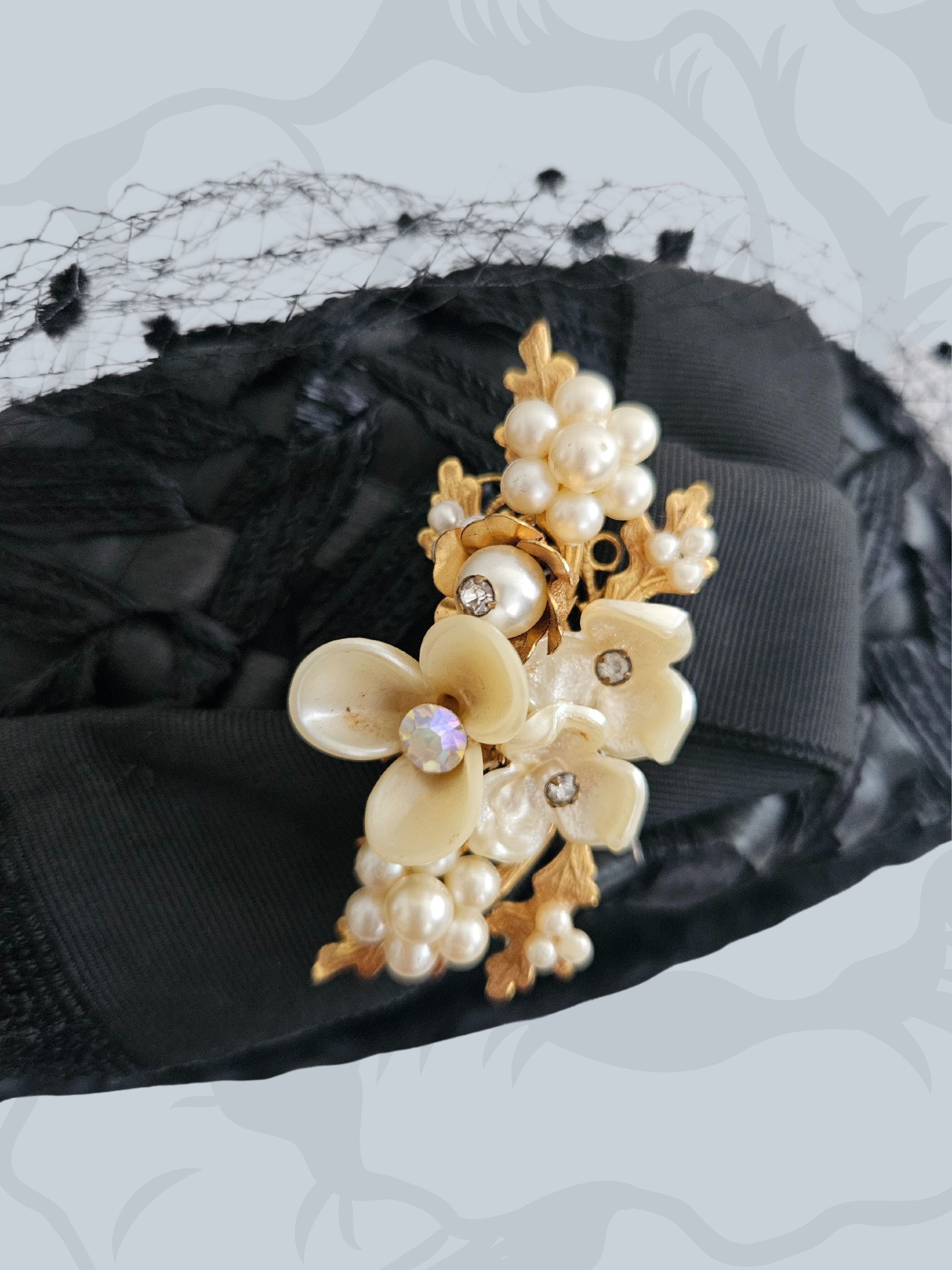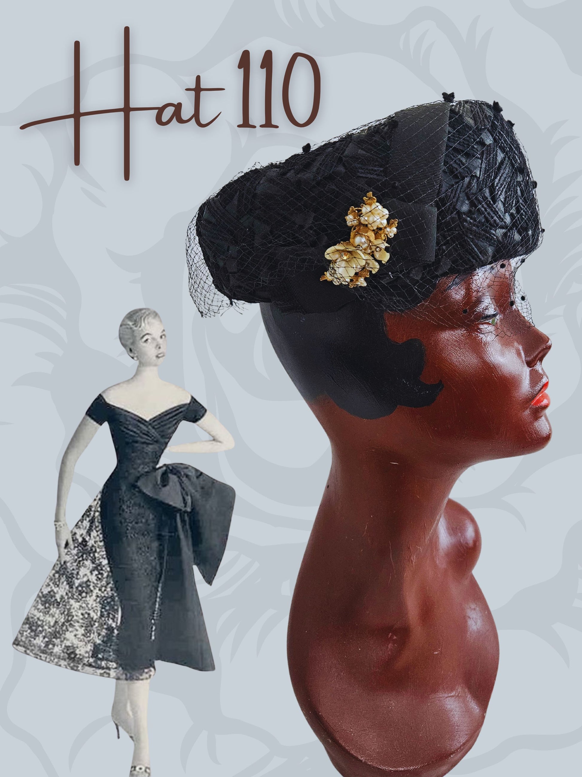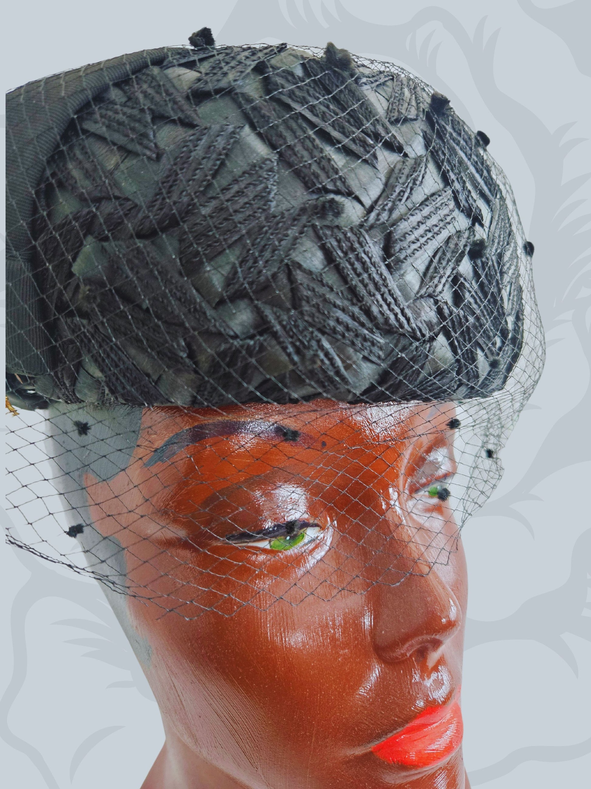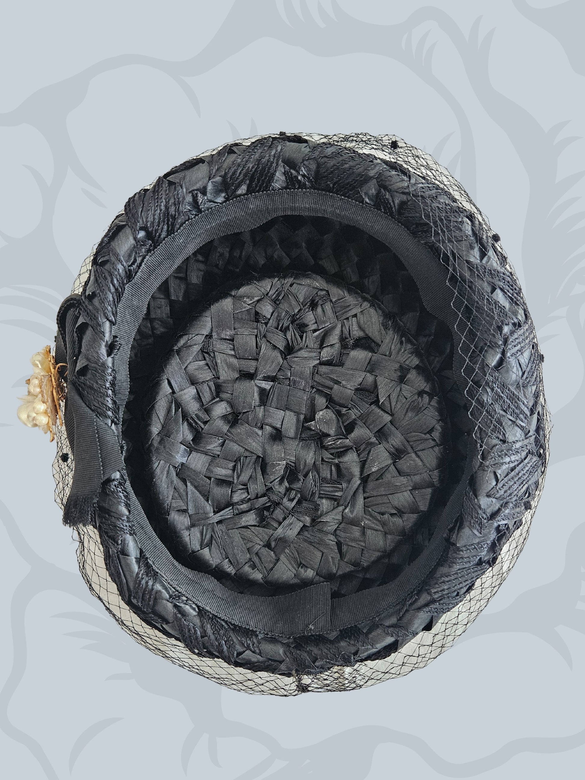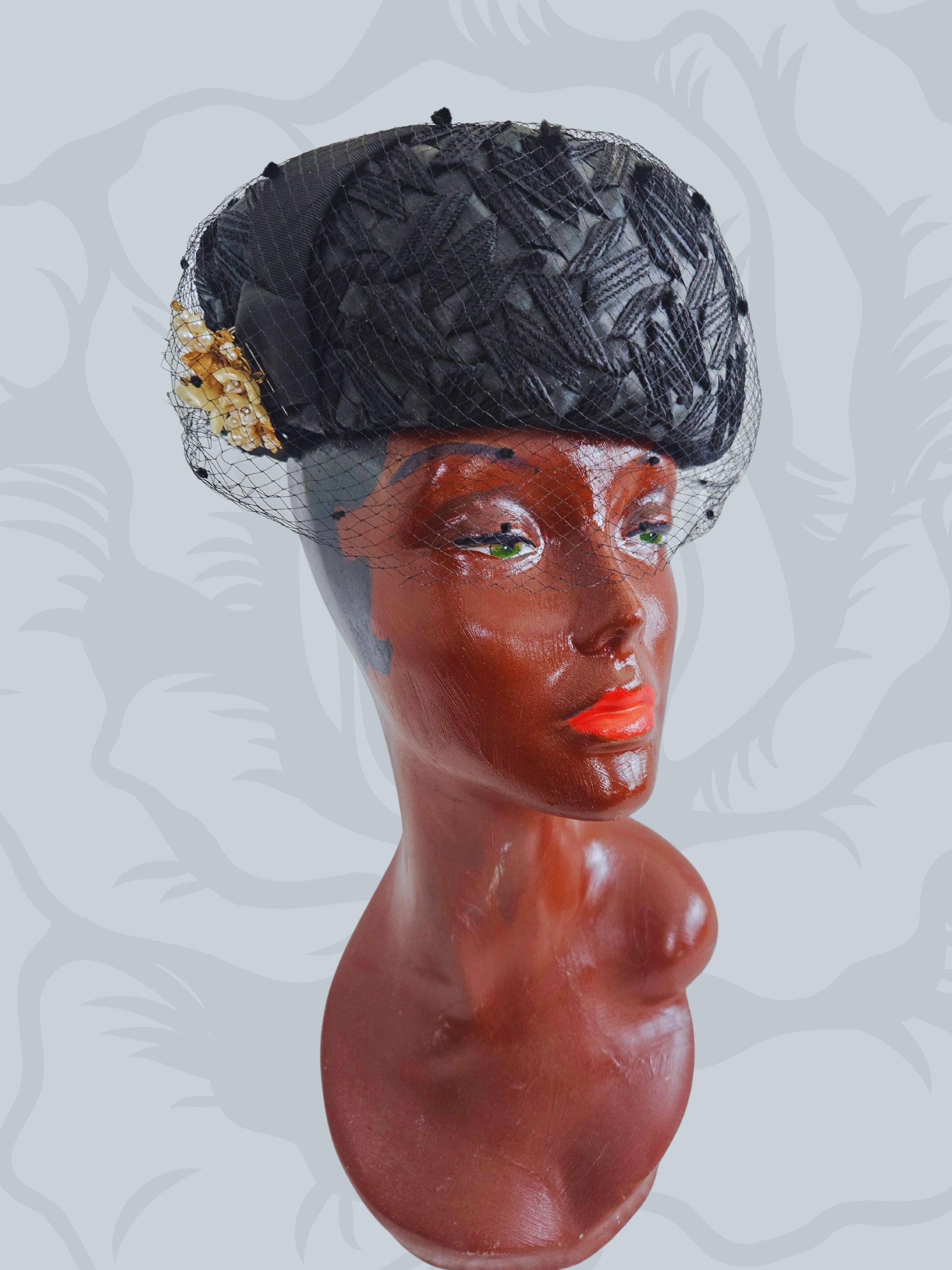 Vintage 1950's-1960's Black Woven Volume Pillbox