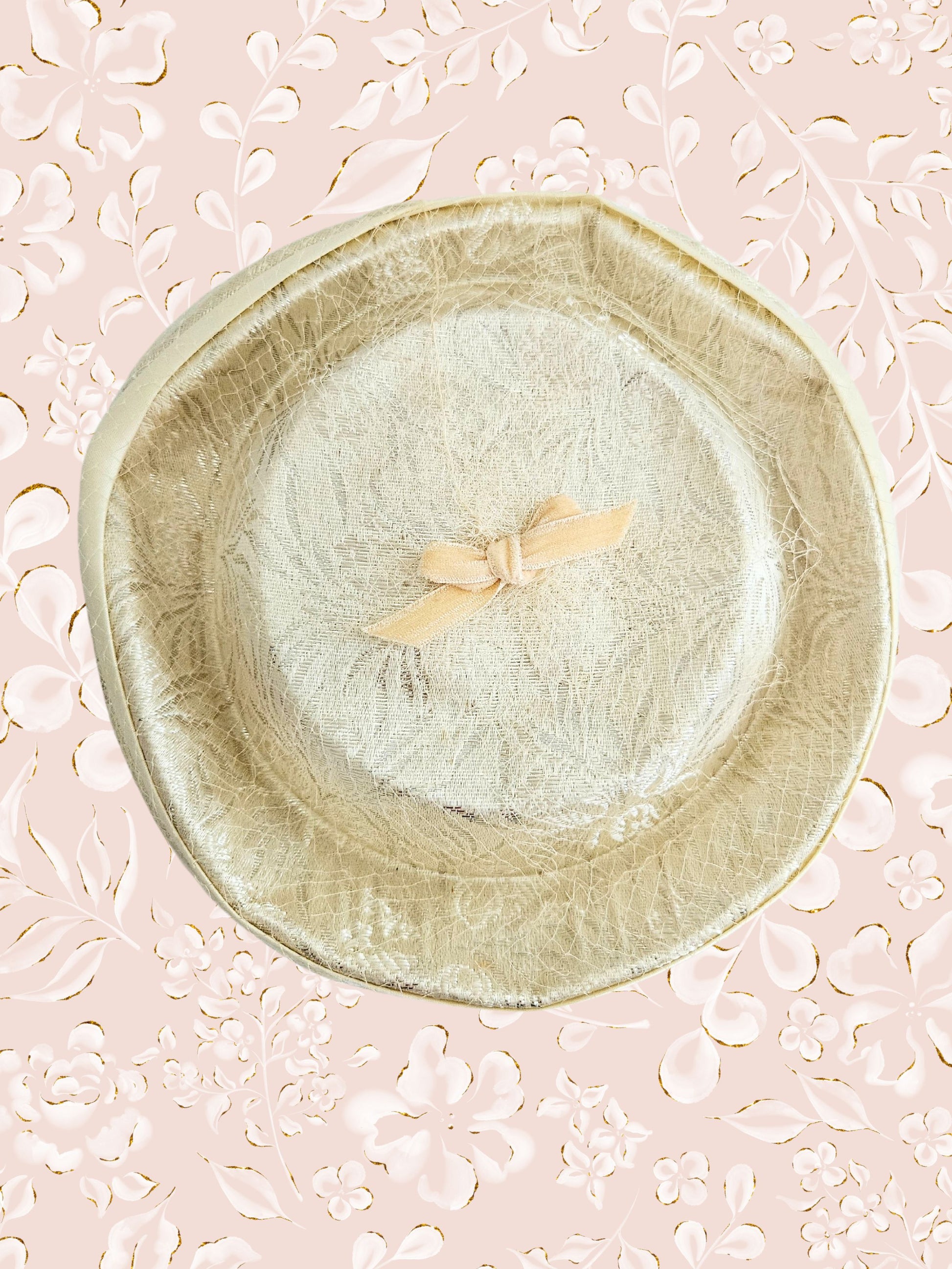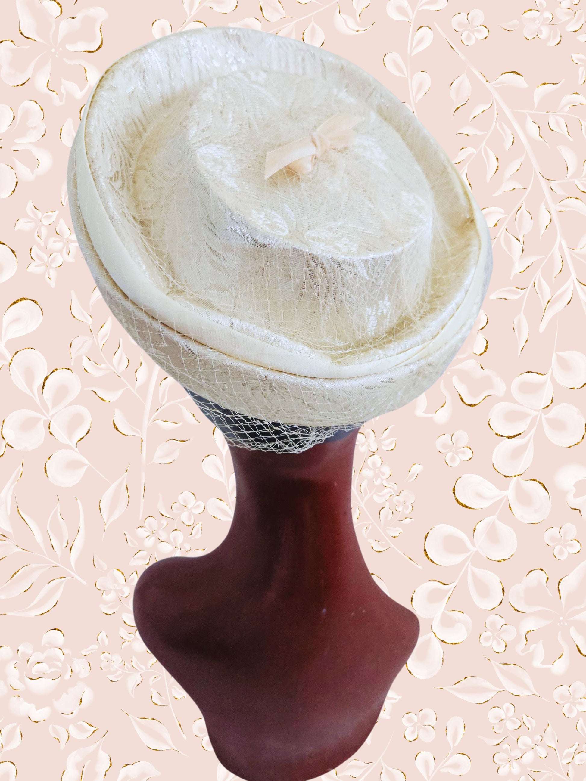 Vintage 1950's-1960's Ivory Brocade Bridal Topper