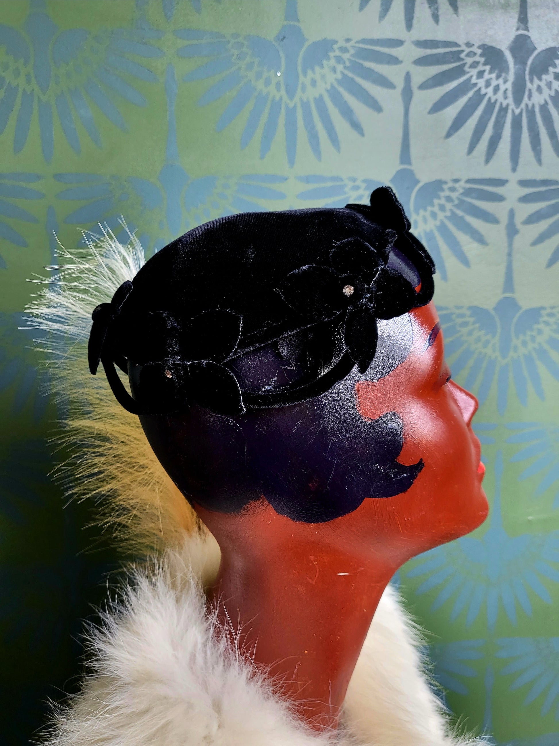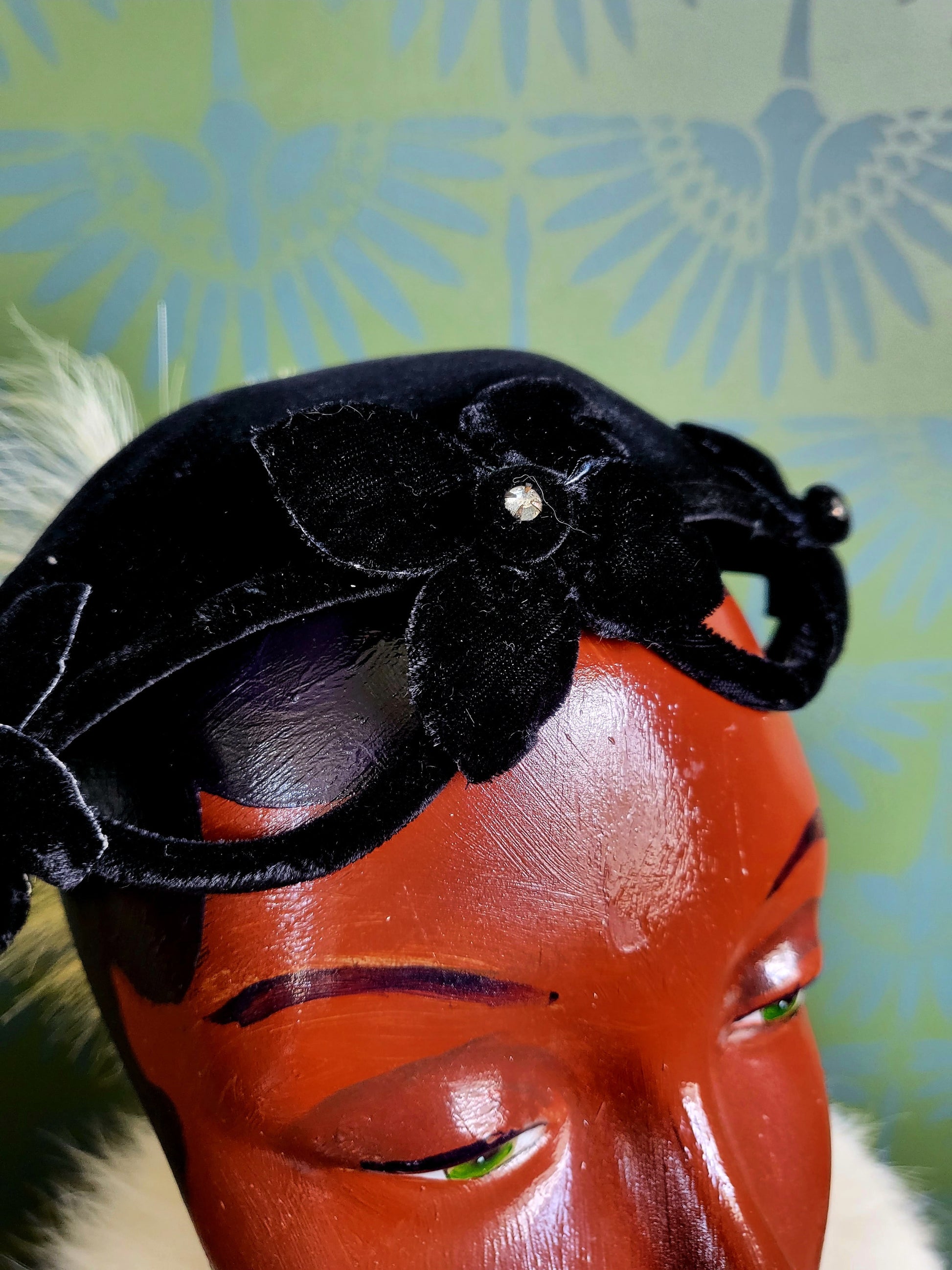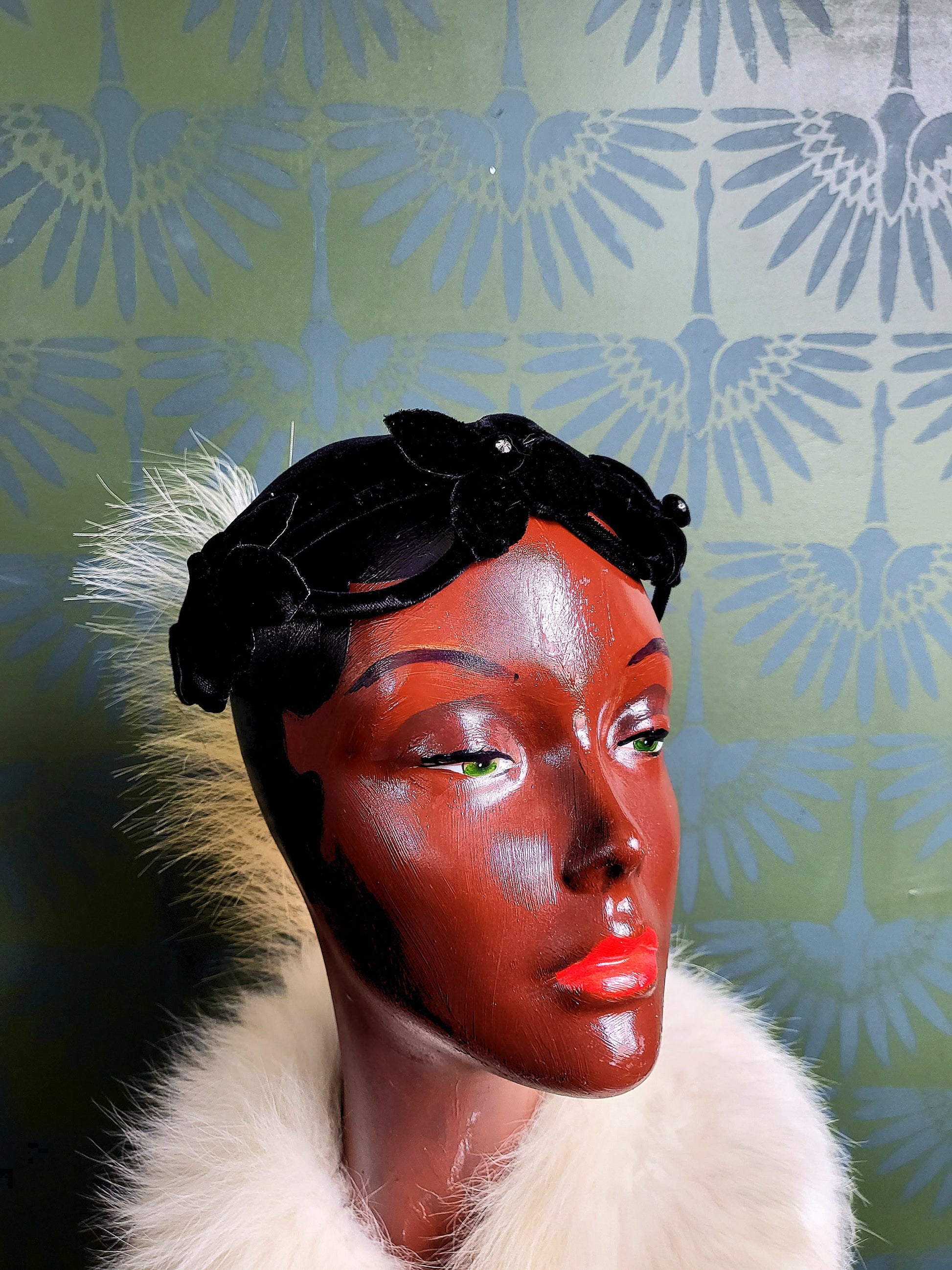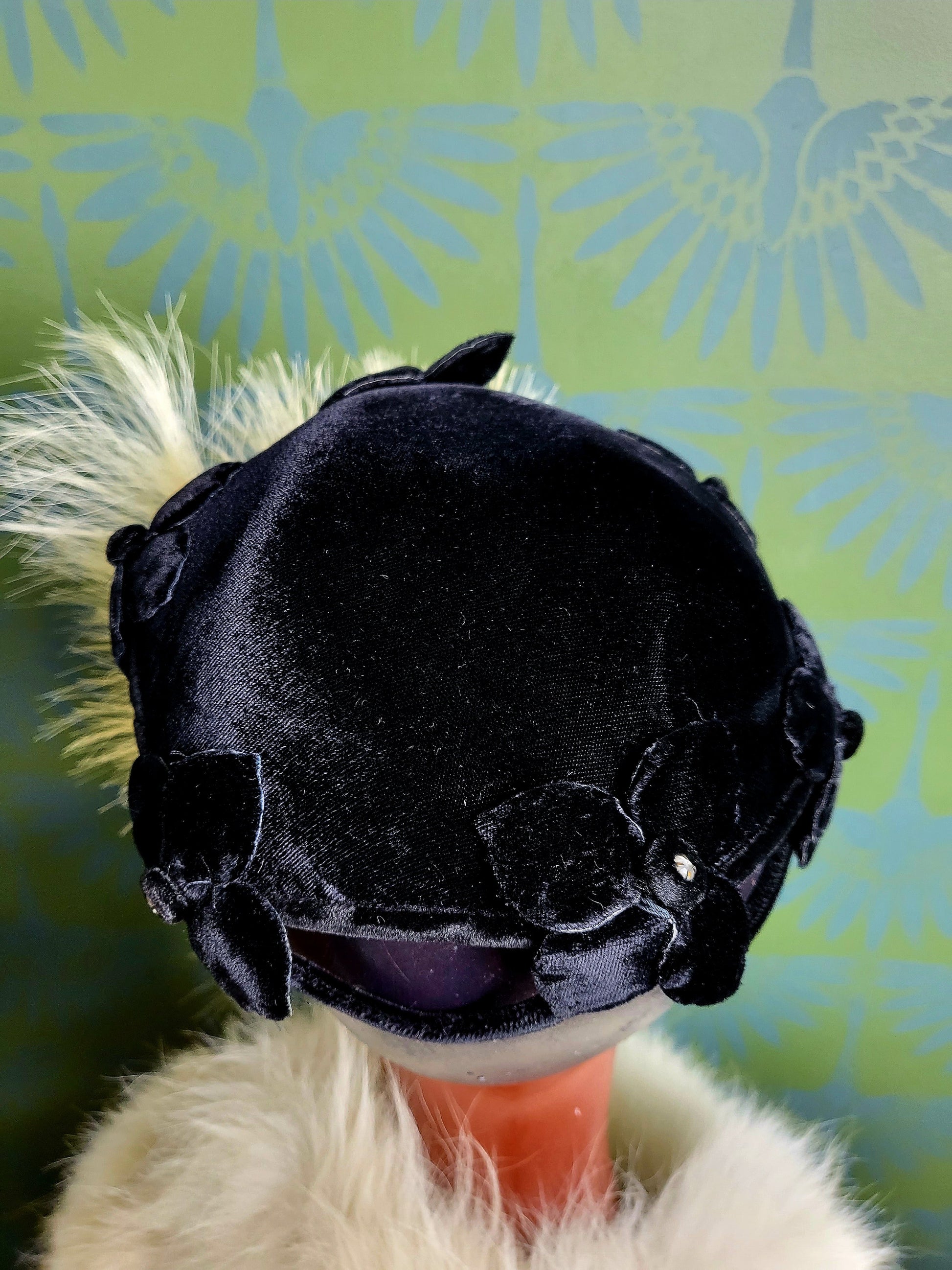 Vintage 1950's "Shillito's" Black Velvet Topper