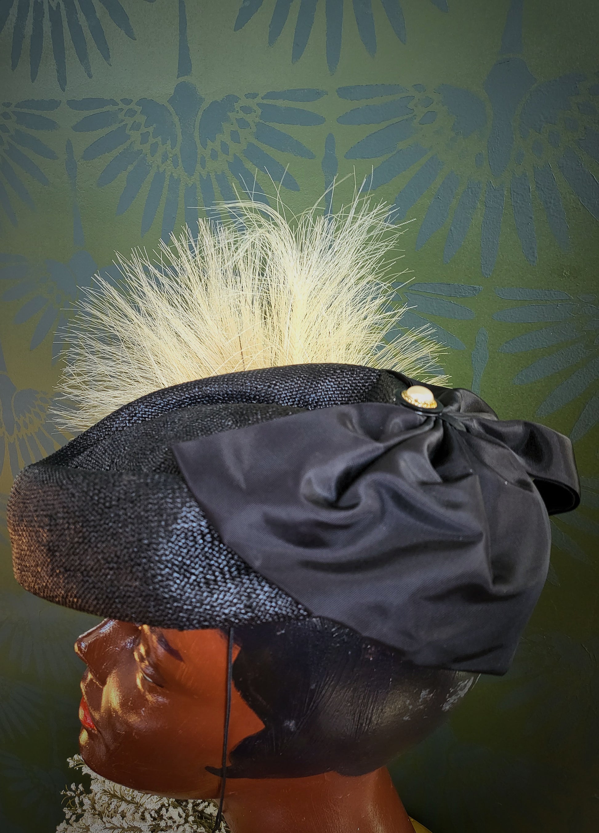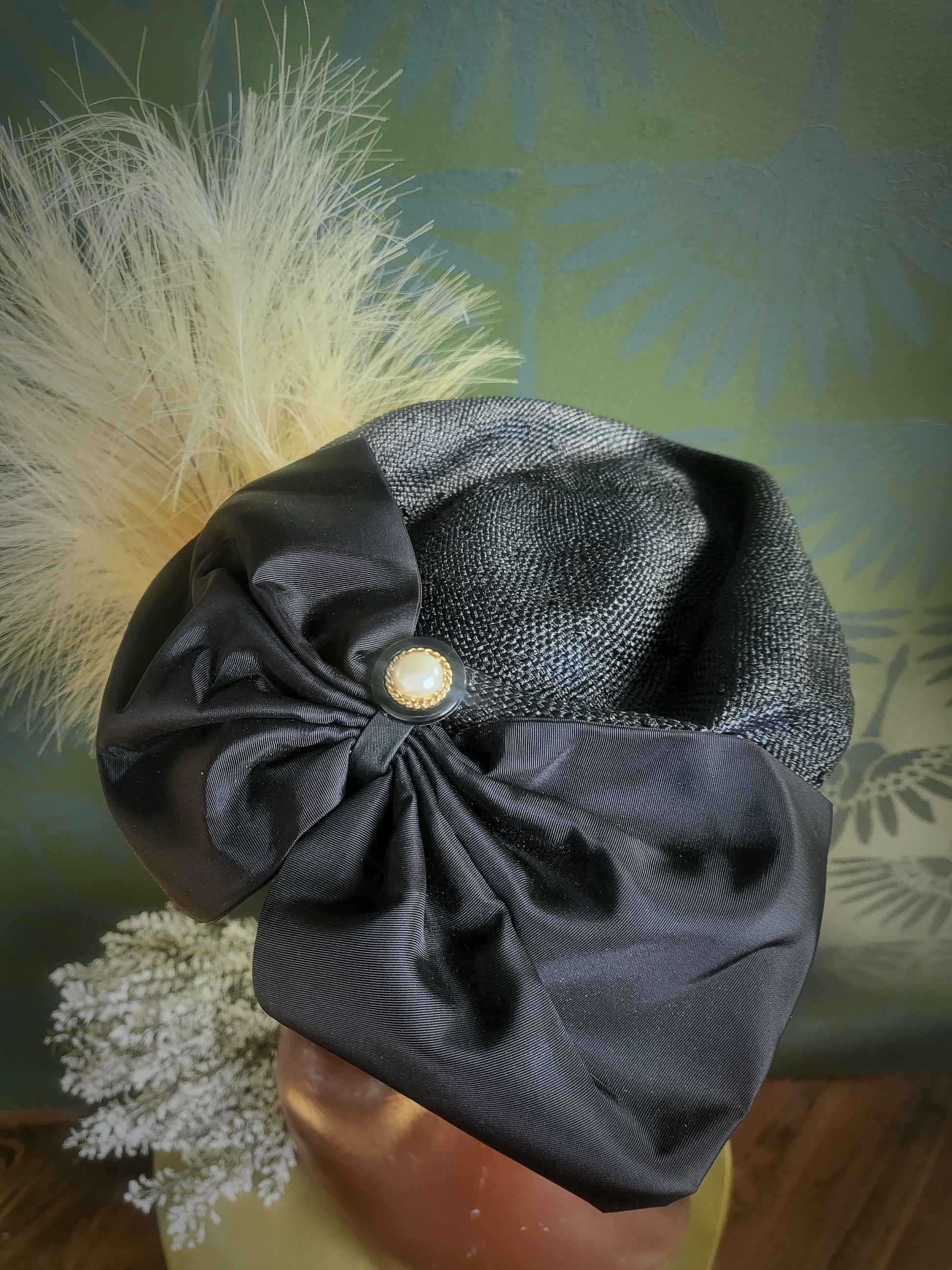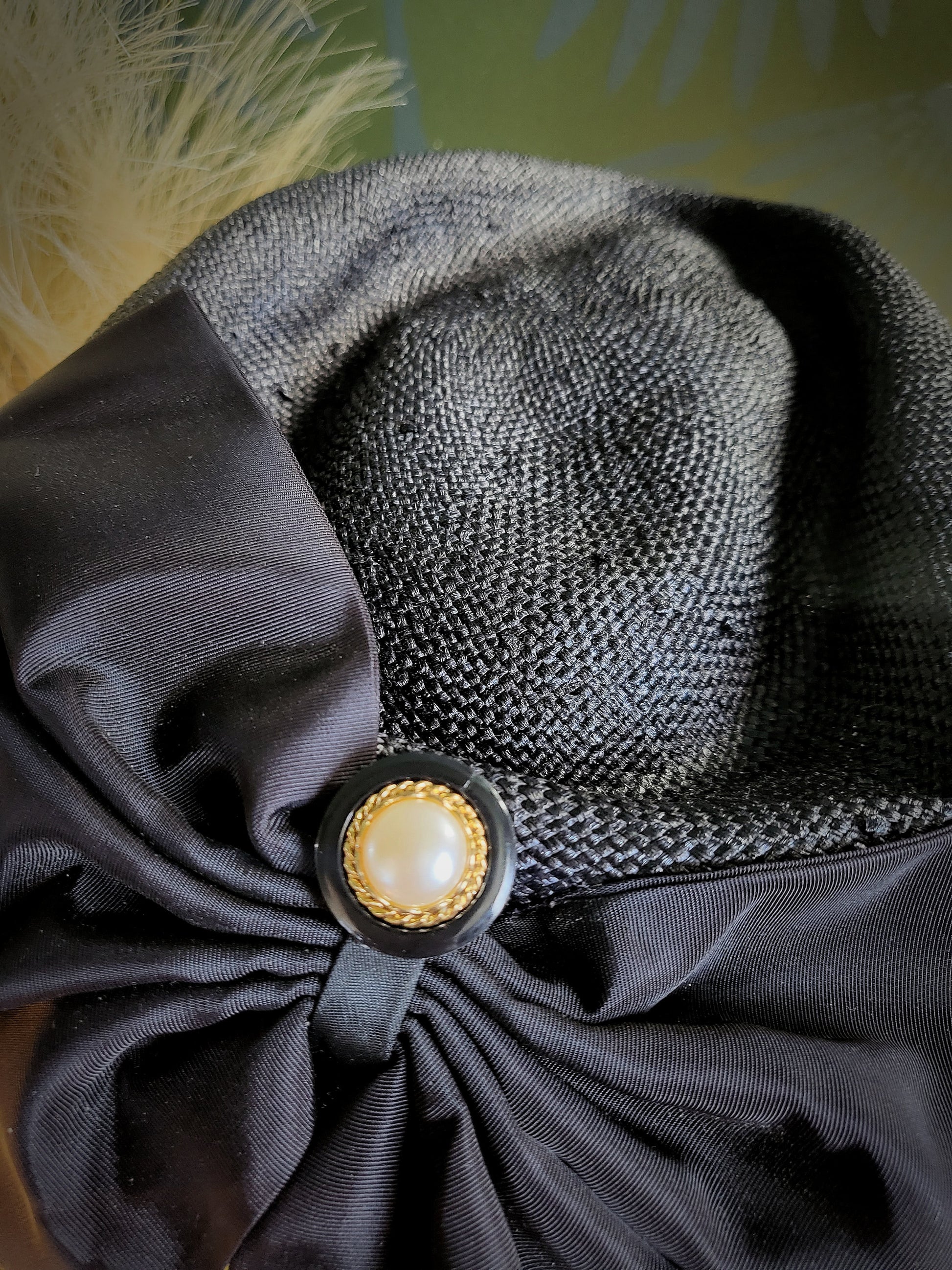 HAT86 - Vintage 1950's "Mr. Charles" Black Woven Topper with Bow