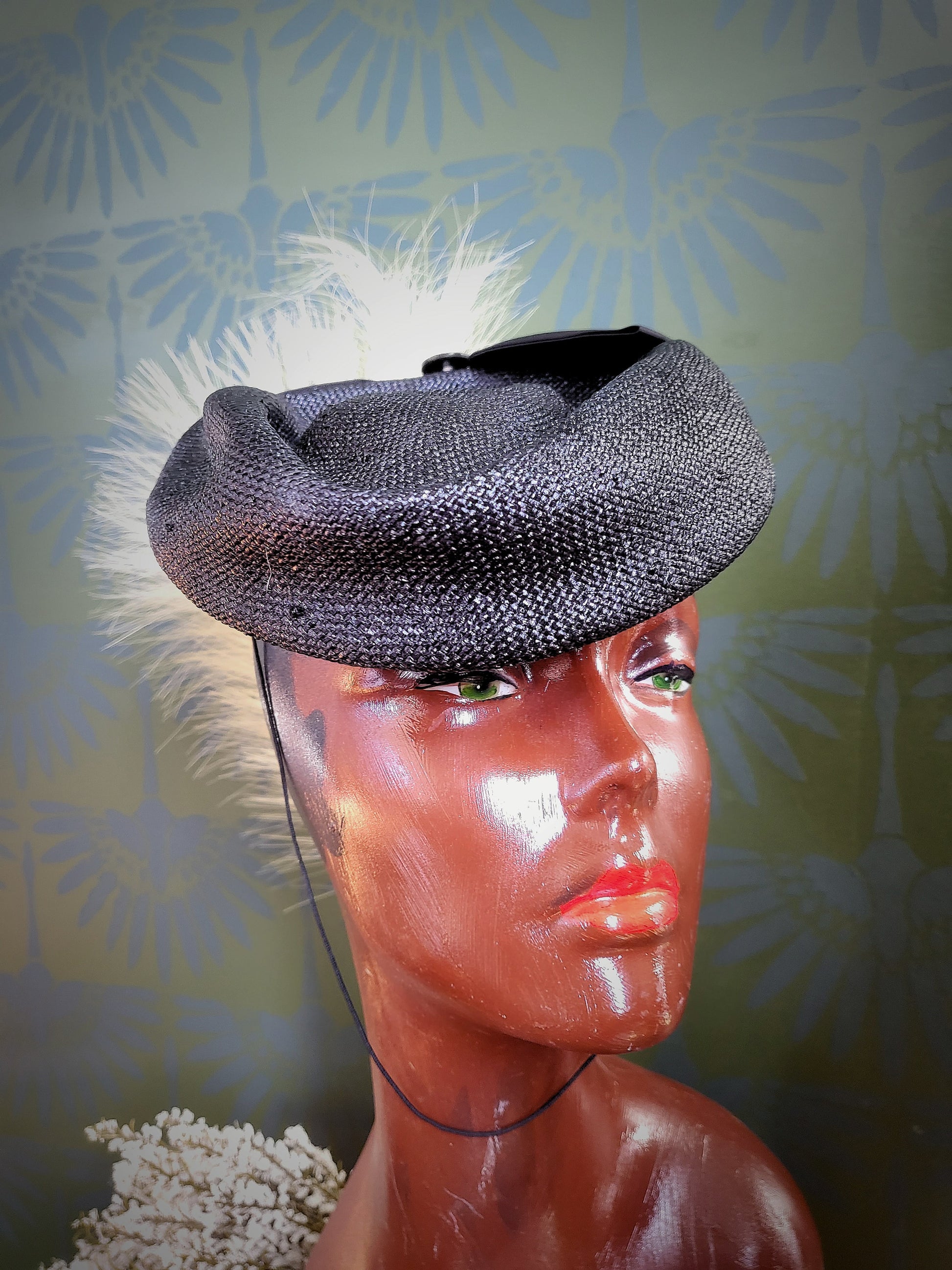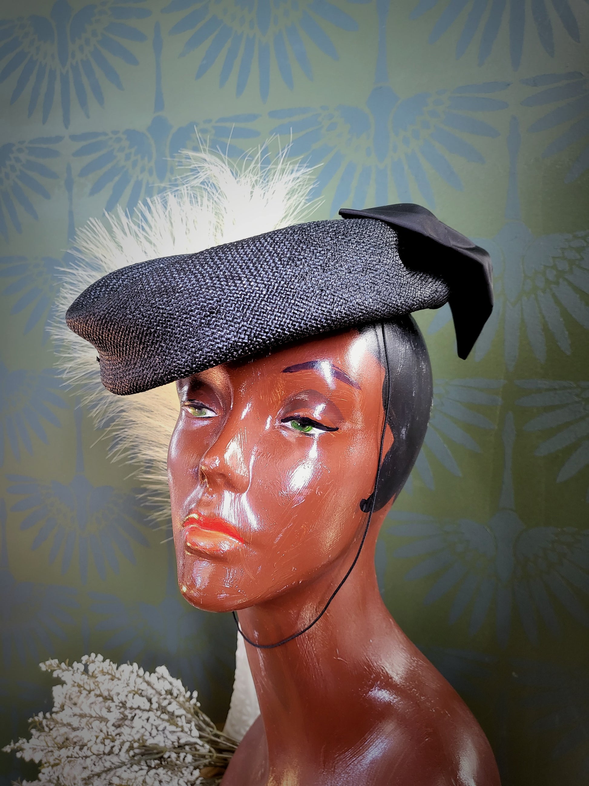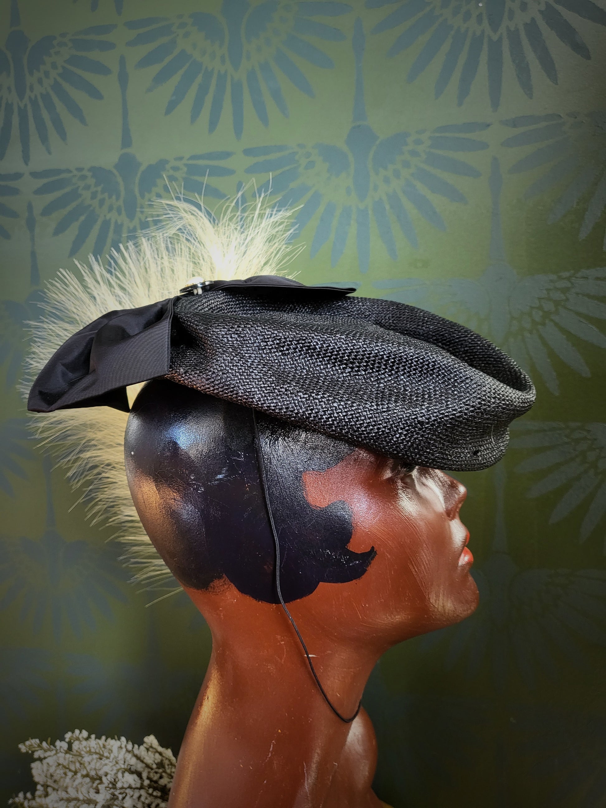 HAT86 - Vintage 1950's "Mr. Charles" Black Woven Topper with Bow