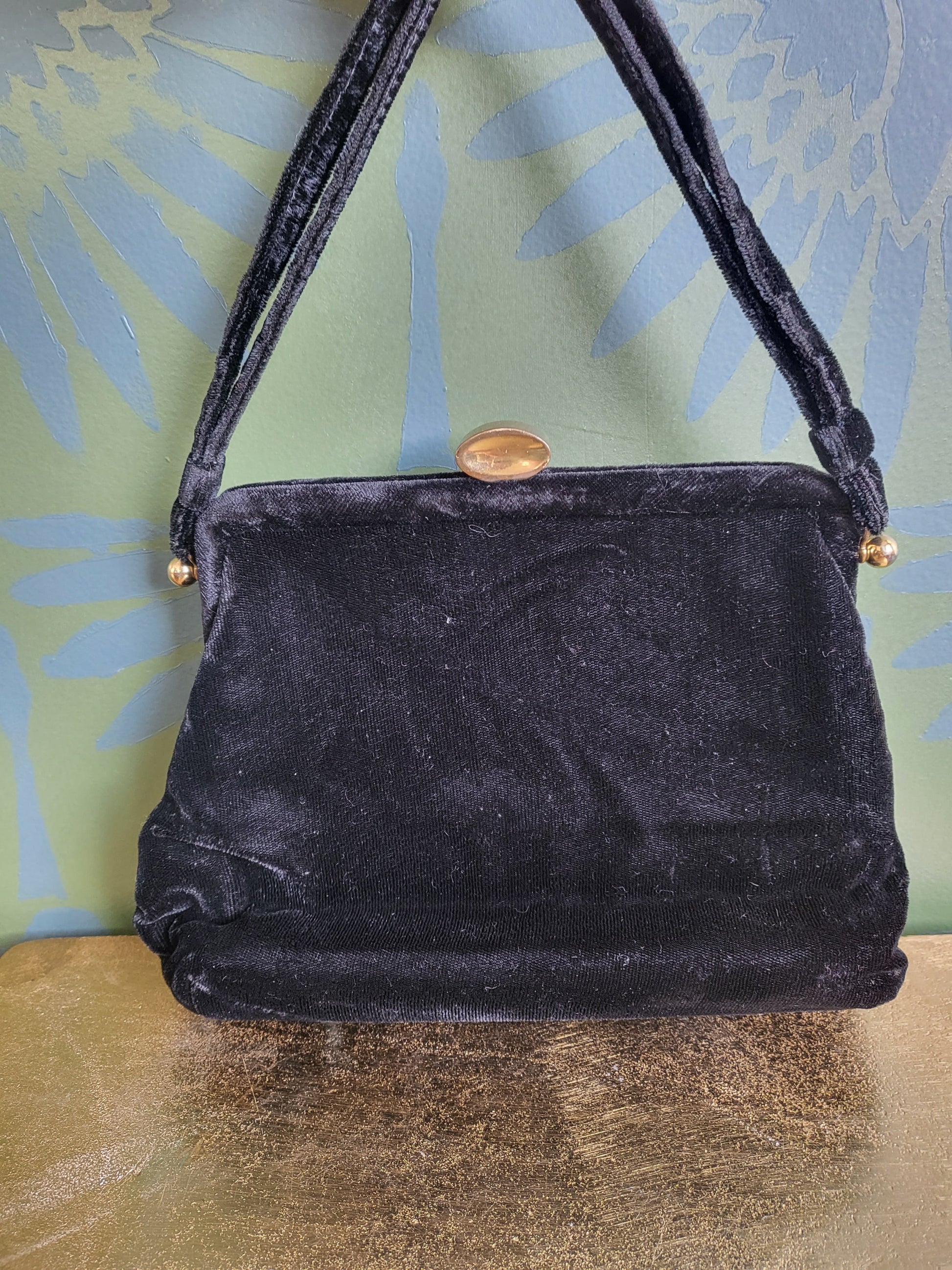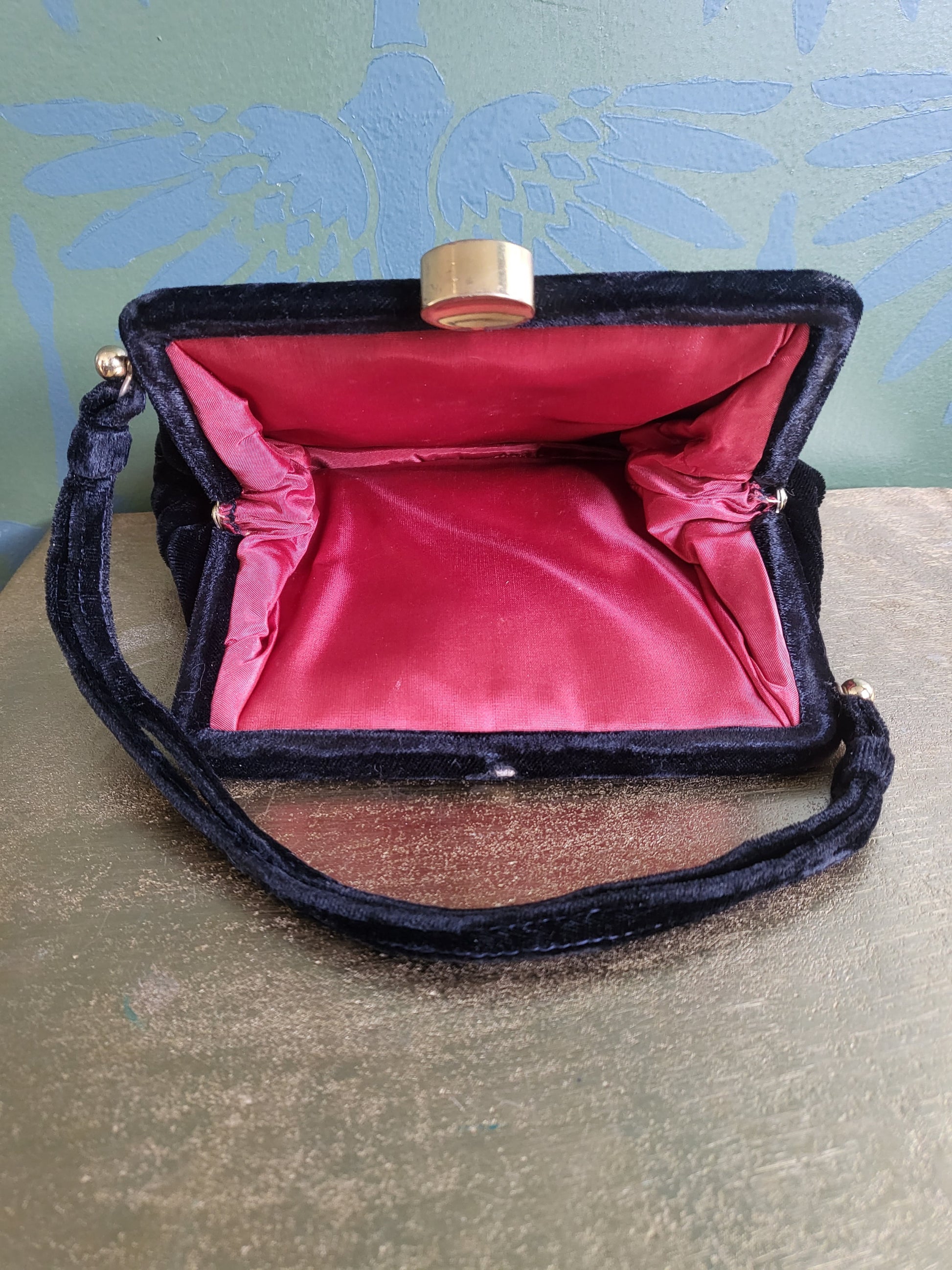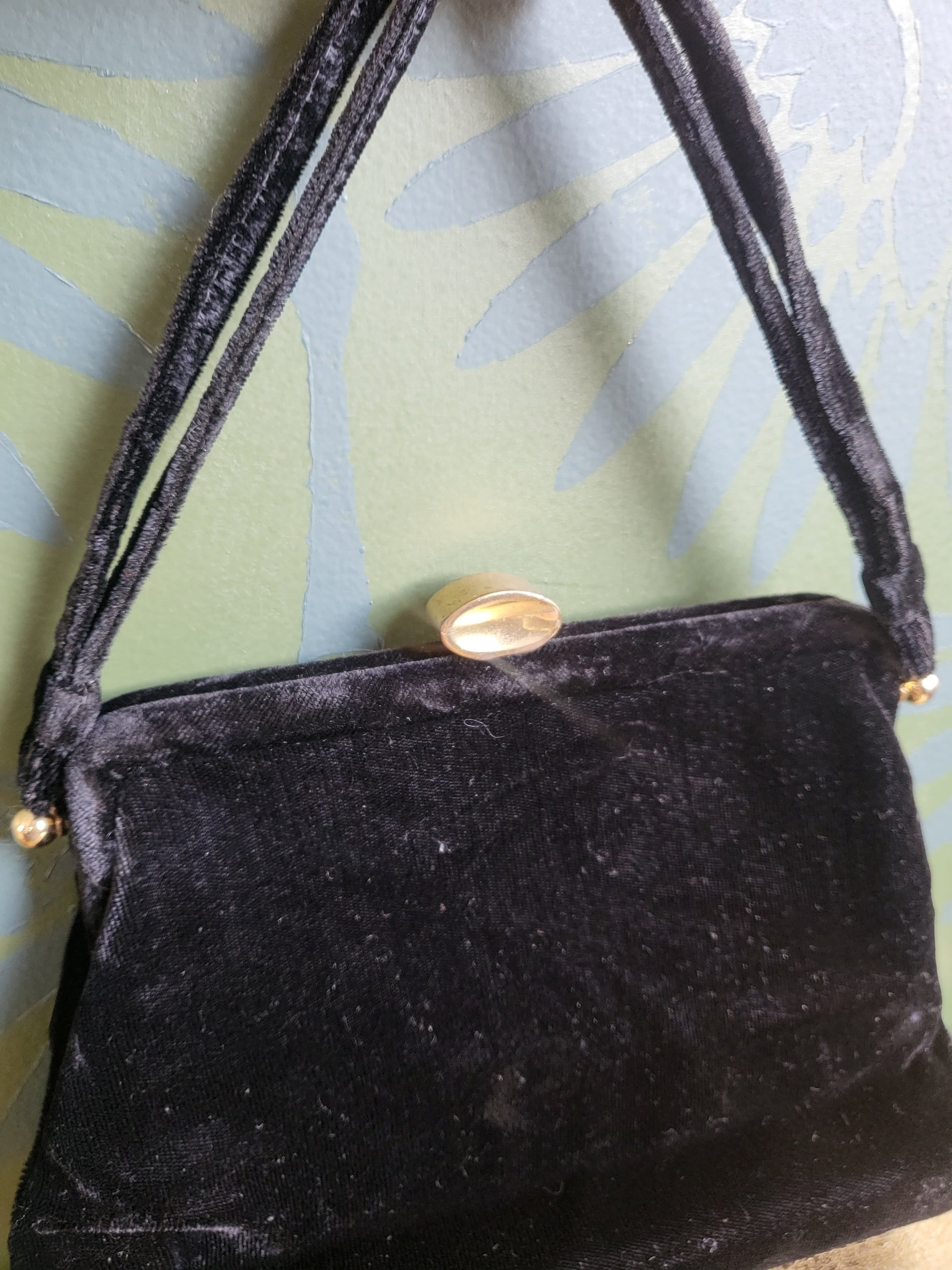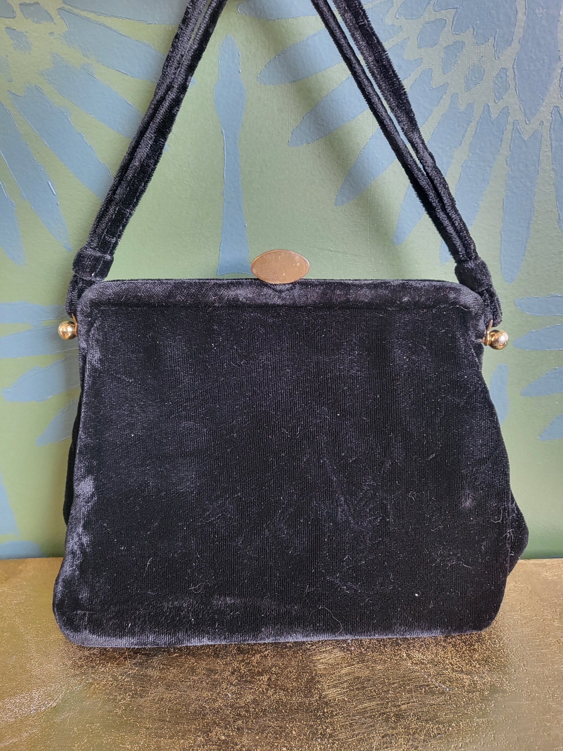 SOLD - Vintage 1940's-1950's Black Velvet Evening Bag
