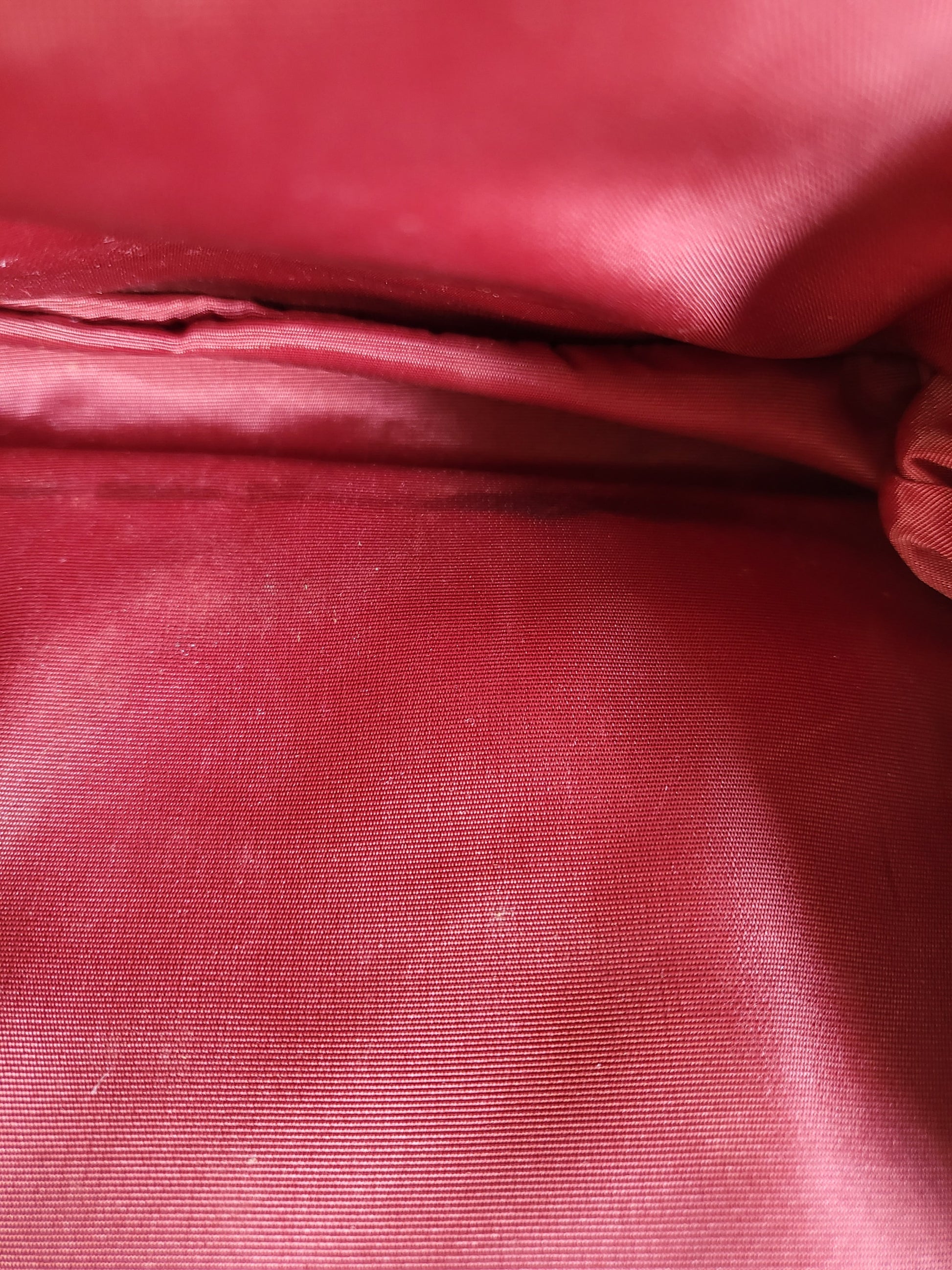 -Lining has a dark line stain in the bottom and can only be seen when the purse is opened wide.