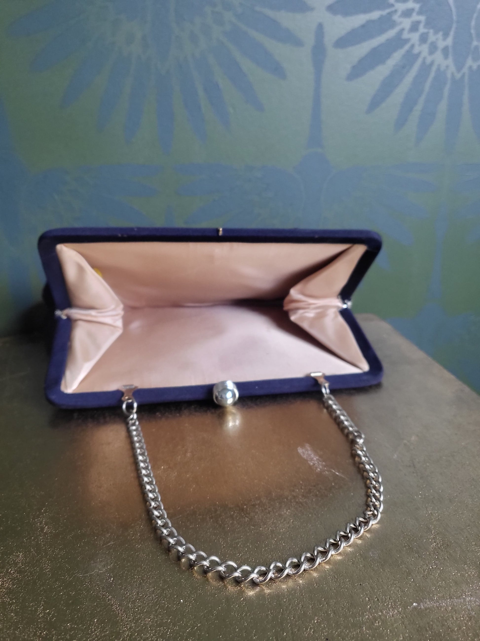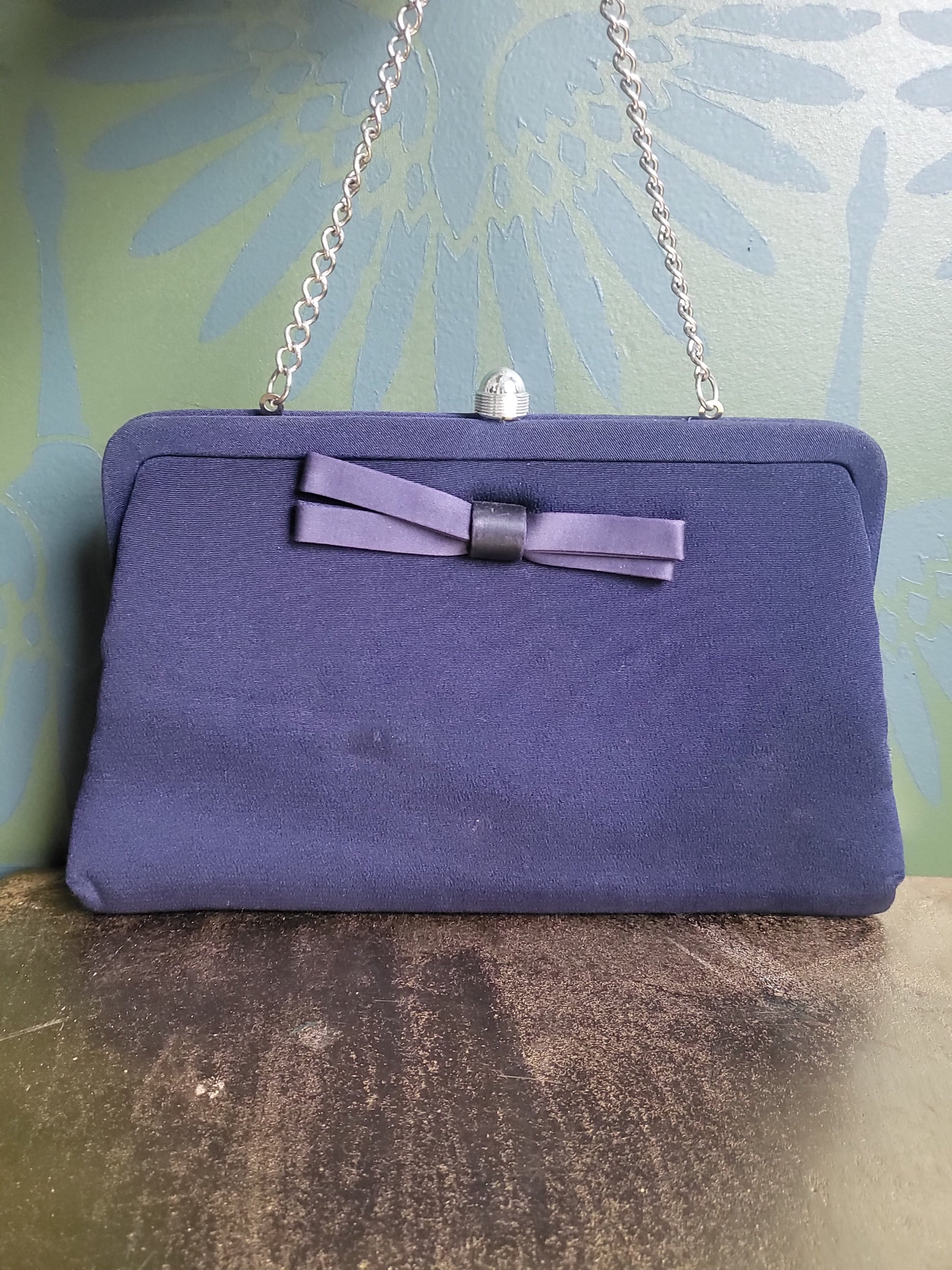 SOLD - Vintage 1940's-1950's Navy Satin Evening Handbag