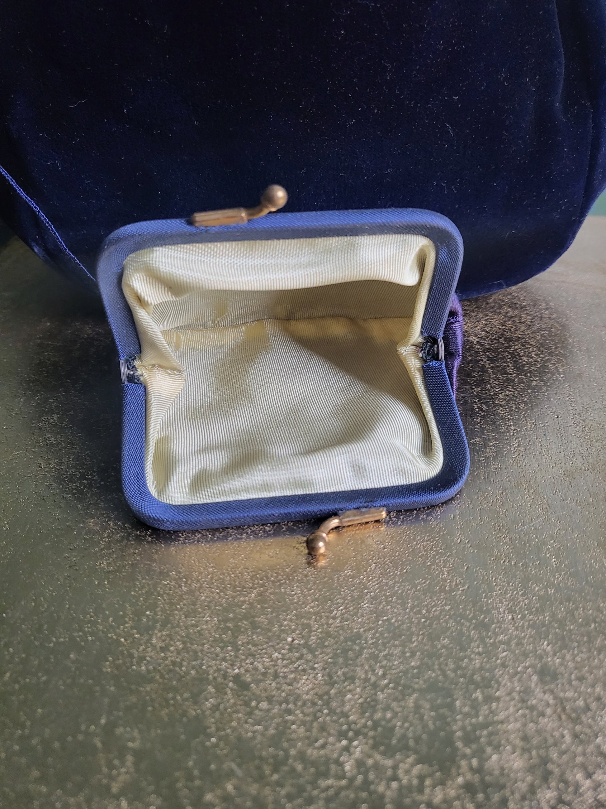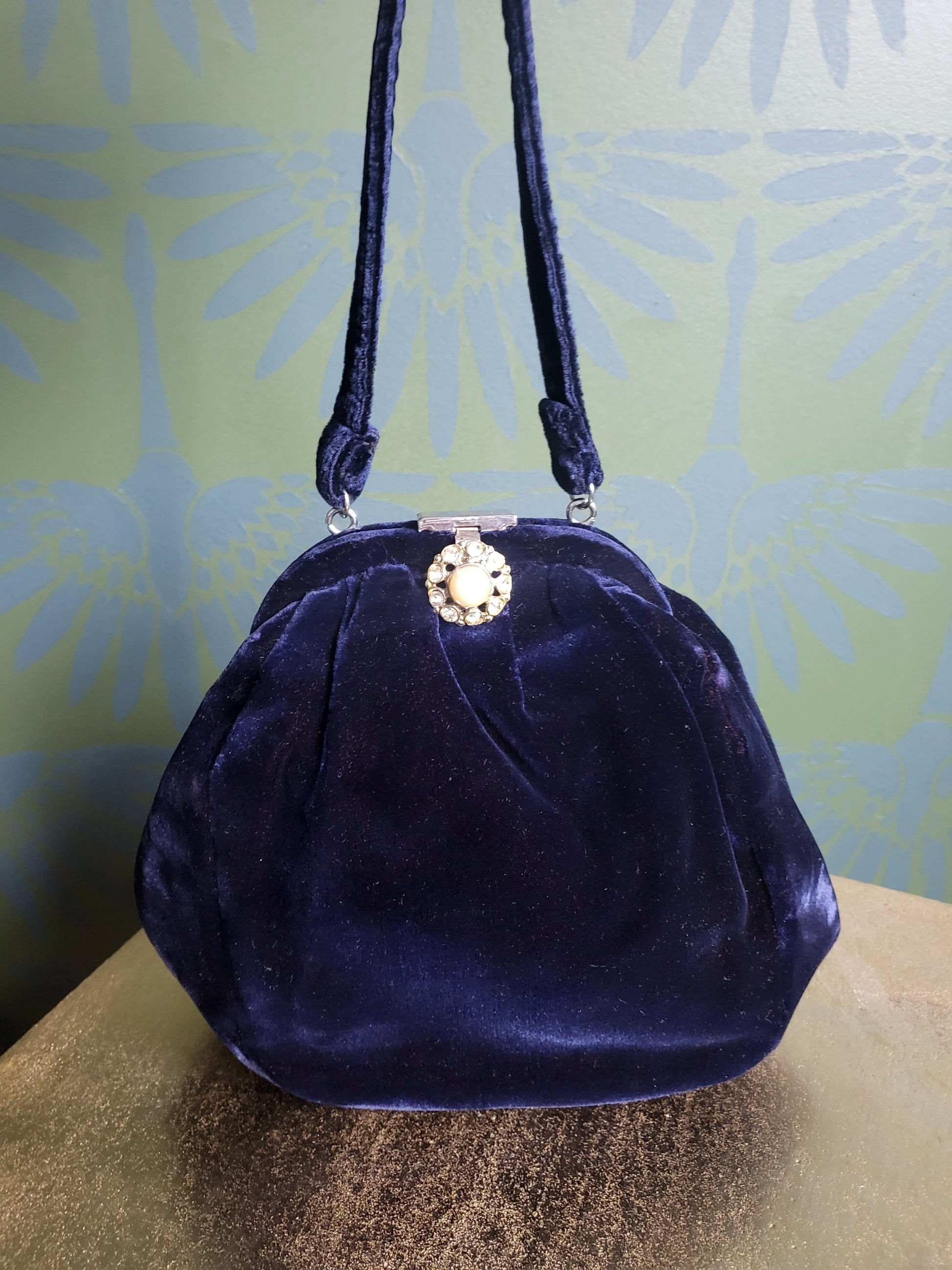 SOLD - Vintage 1940's-1950's Navy Velvet Evening Bag - Rhinestone and Pearl Clasp