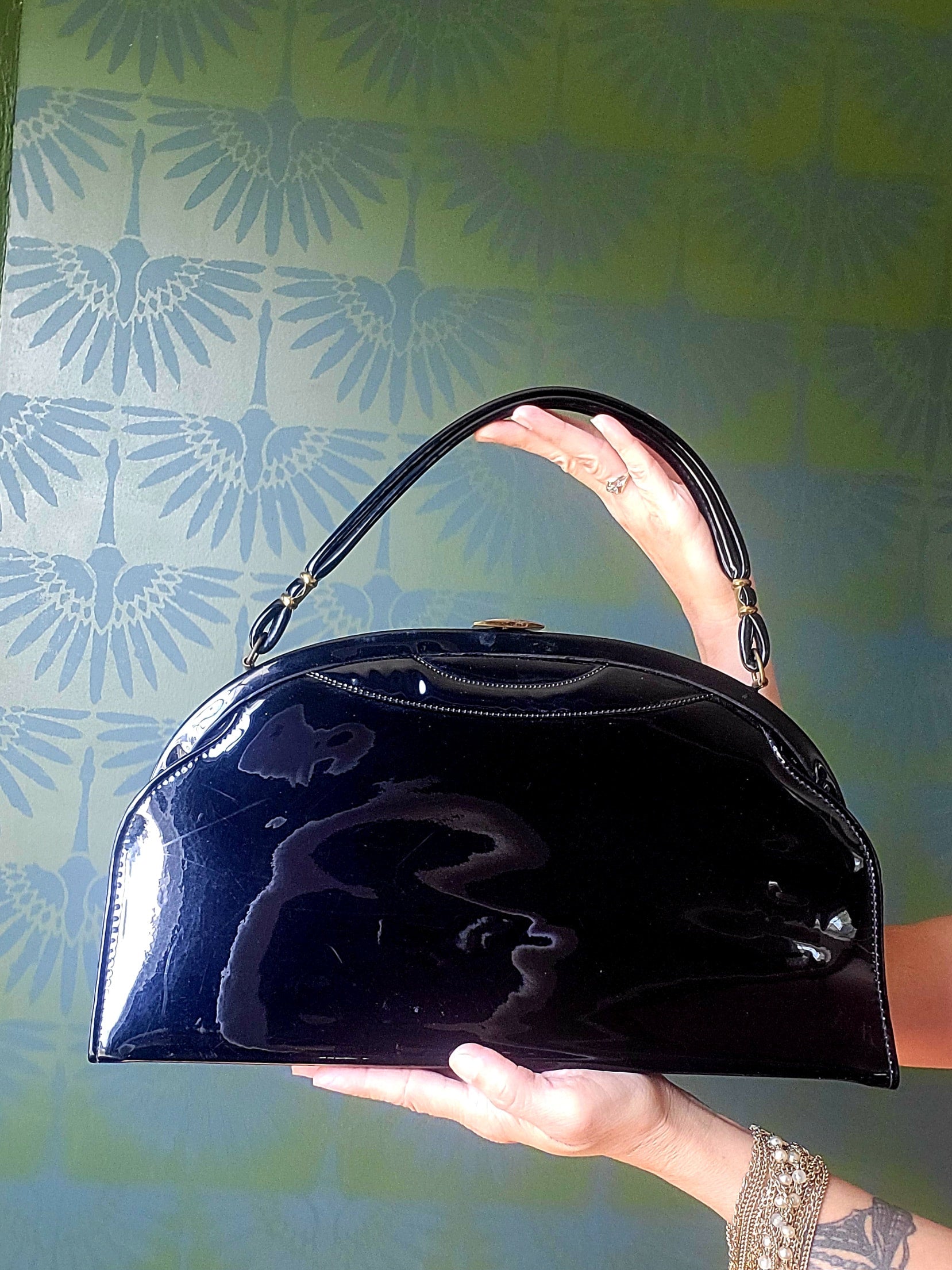 SOLD - Vintage 1950's AETNA Black Patent Leather Handbag