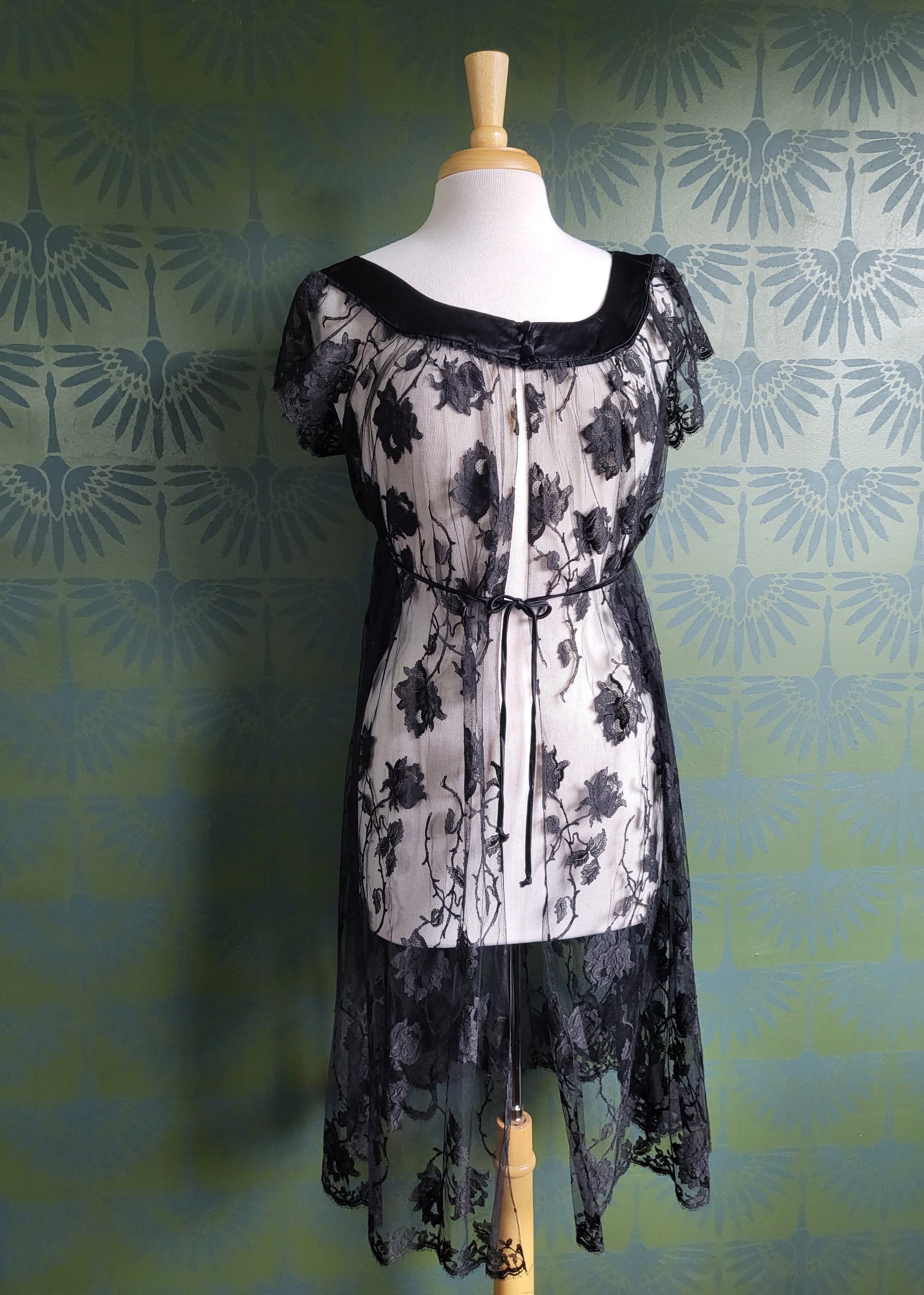 SOLD - Vintage 1950's Claire Sandra by Lucie Ann Beverly Hills Black Rose Lace Negligee Robe