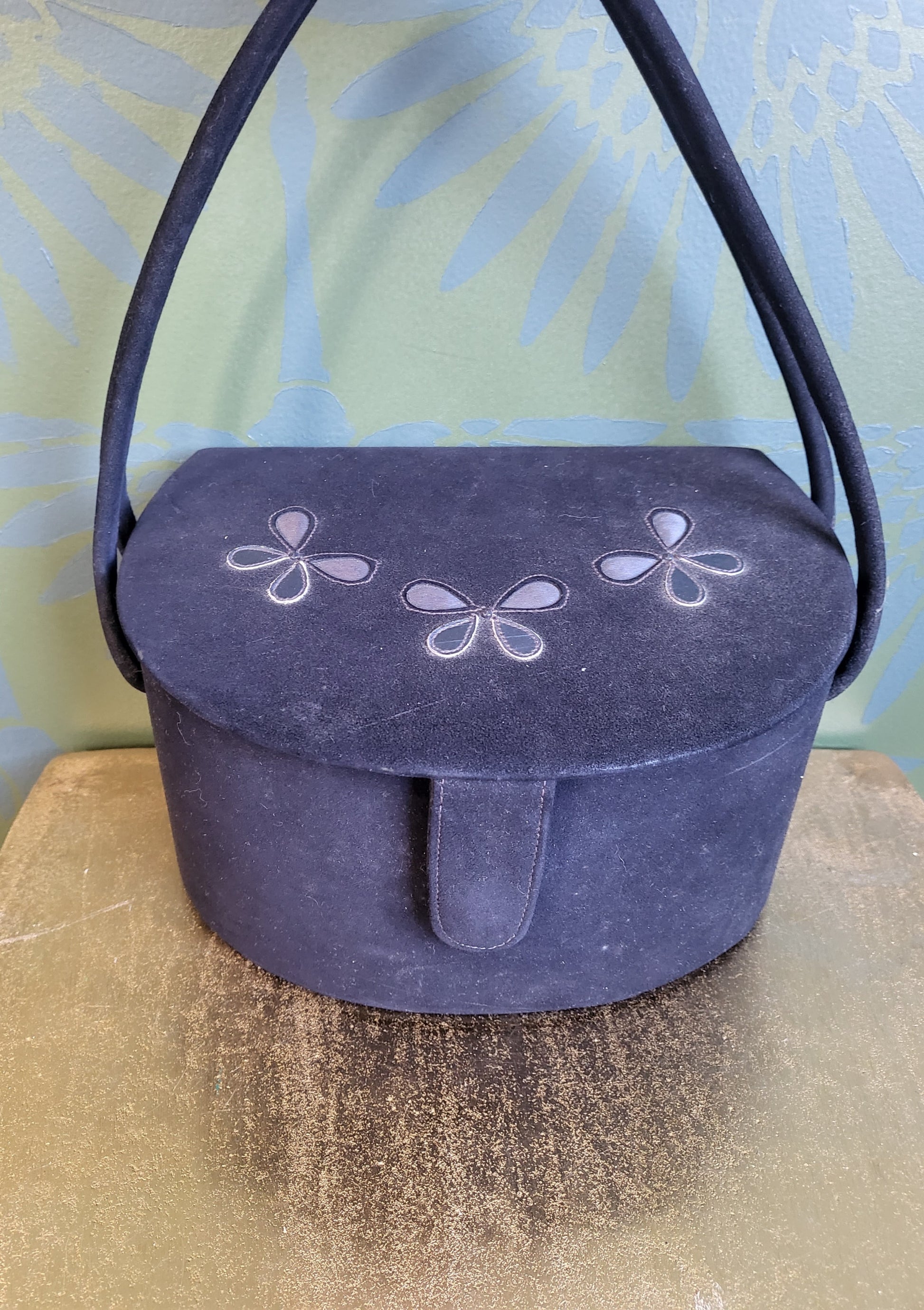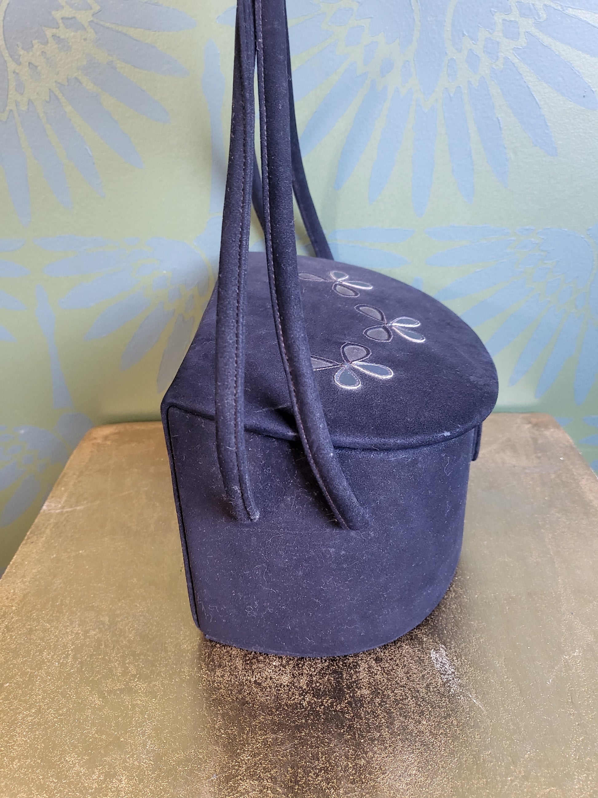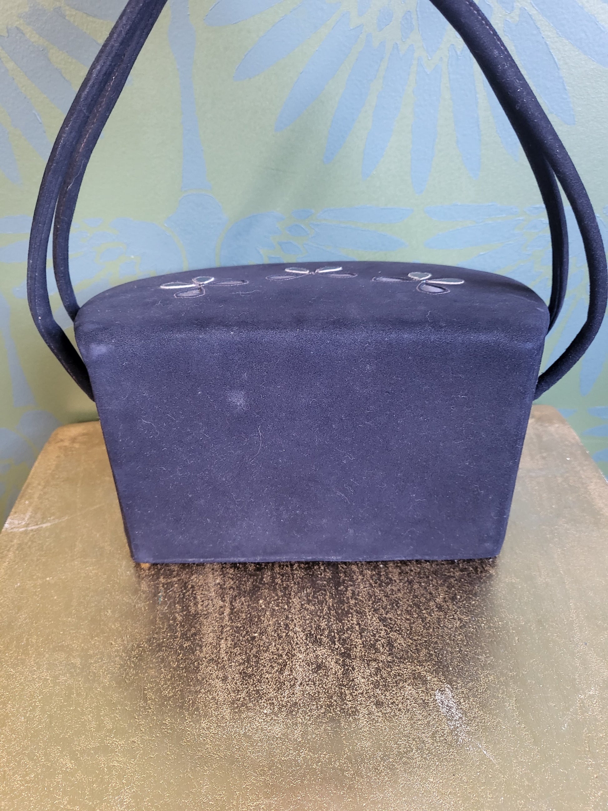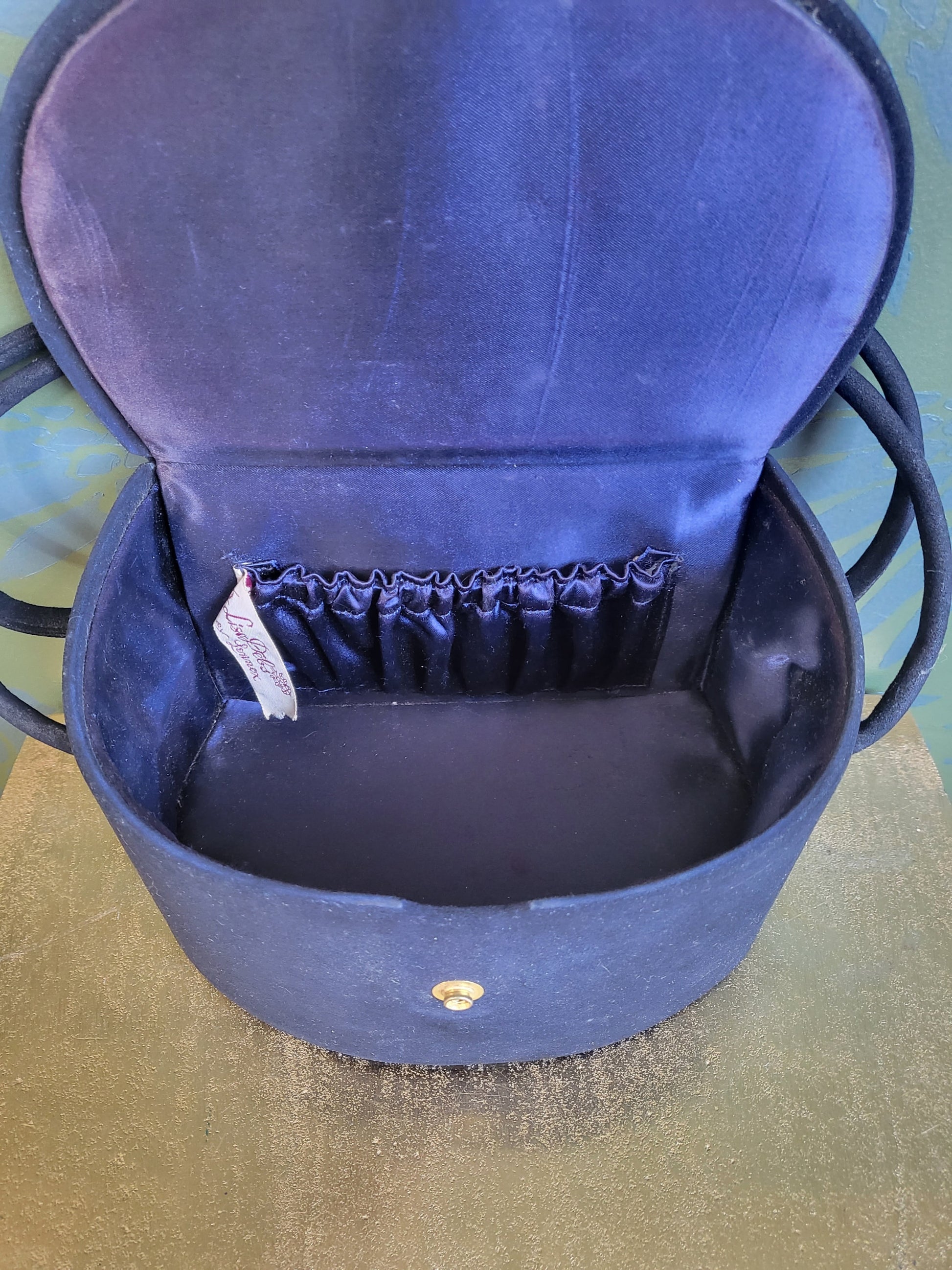 SOLD - Vintage 1950's De Liso Debs by Lennox Velour Structured Handbag - Dark Navy