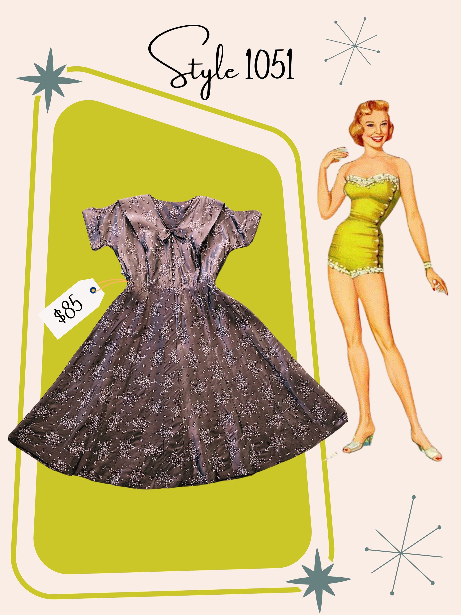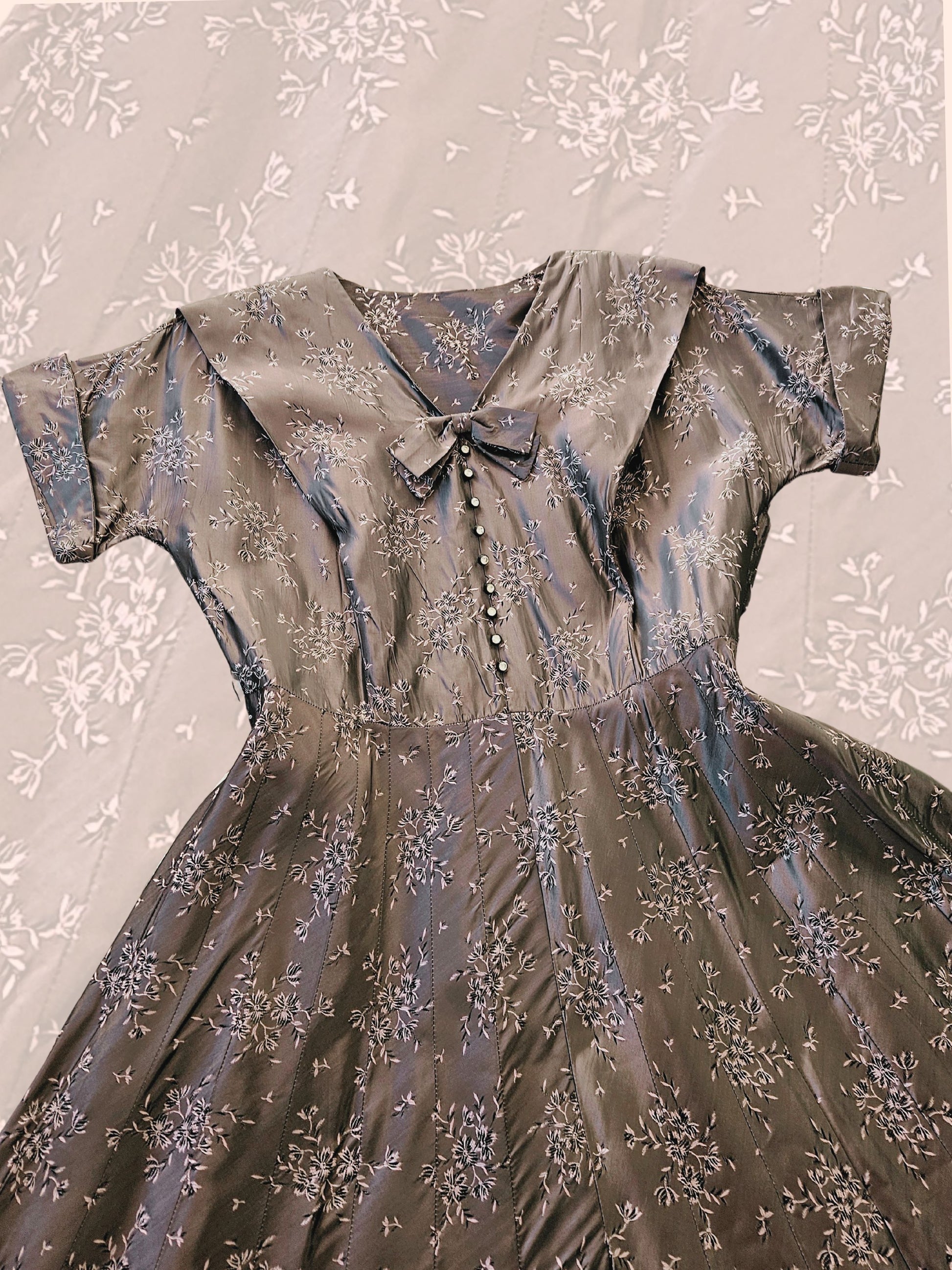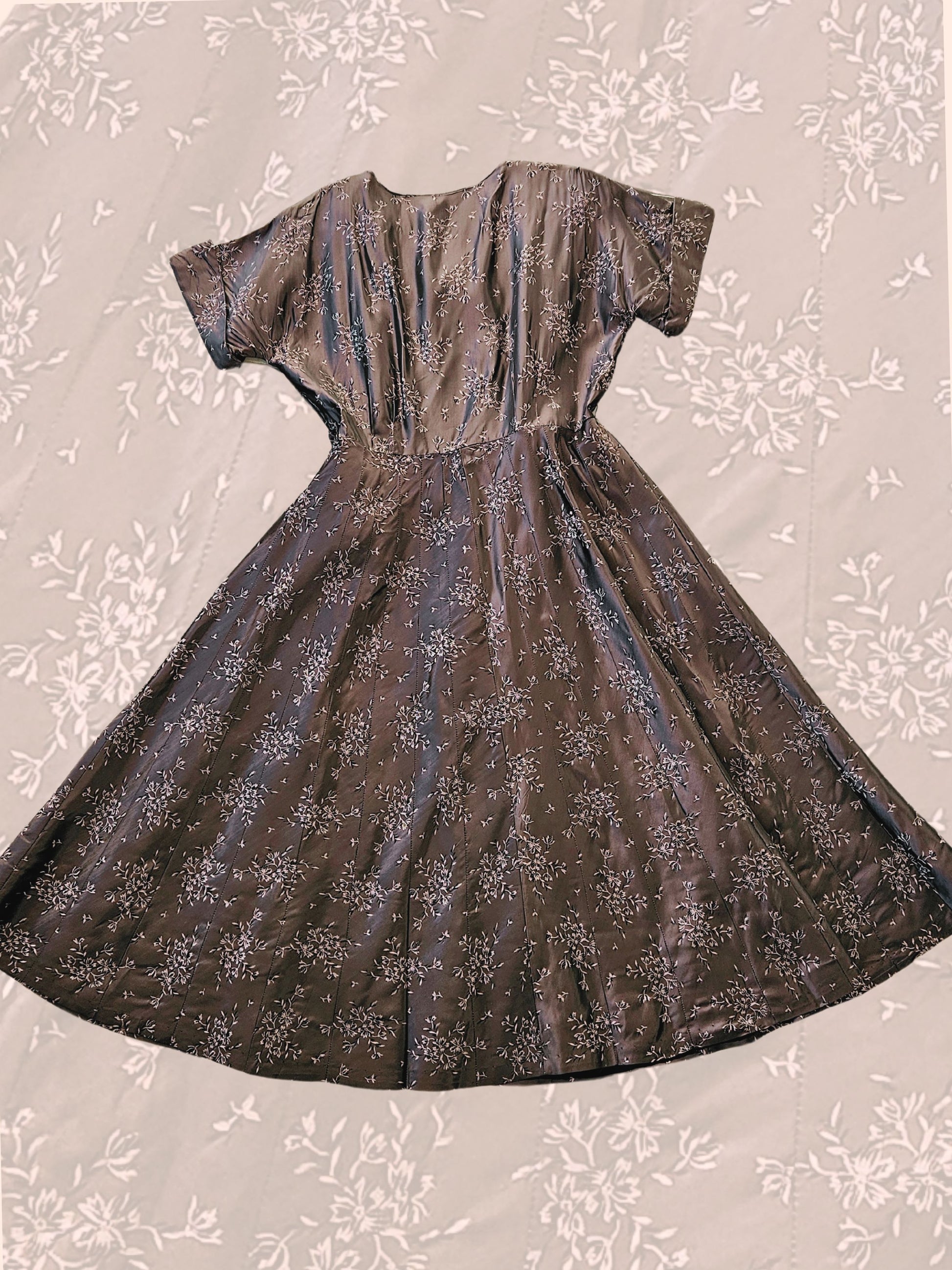 Vintage 1950's Smoky Lavender Fit & Flare Blossom Dress
