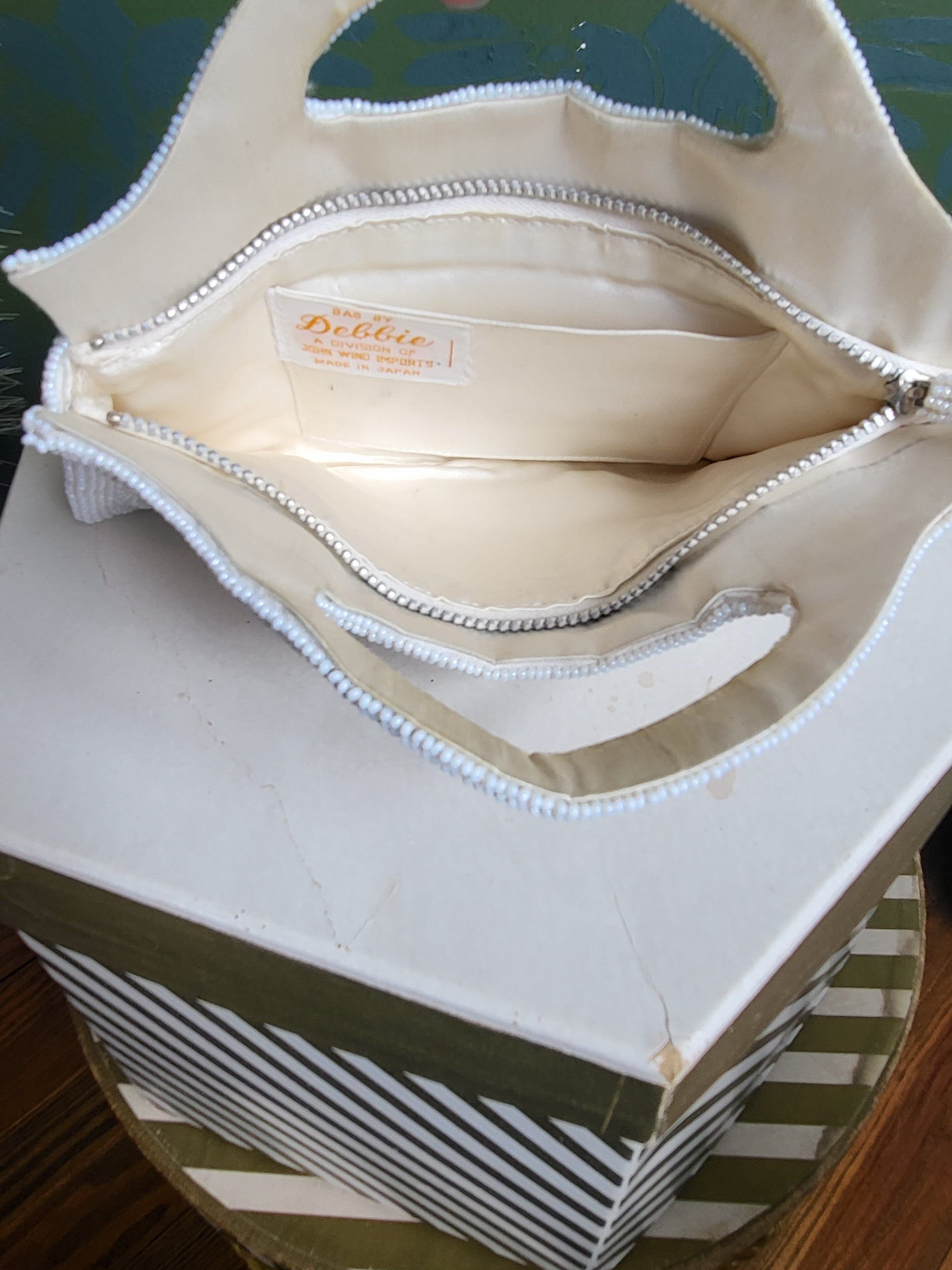 SOLD - Vintage 1950's Debbie Ivory Flower Beaded Evening Bag