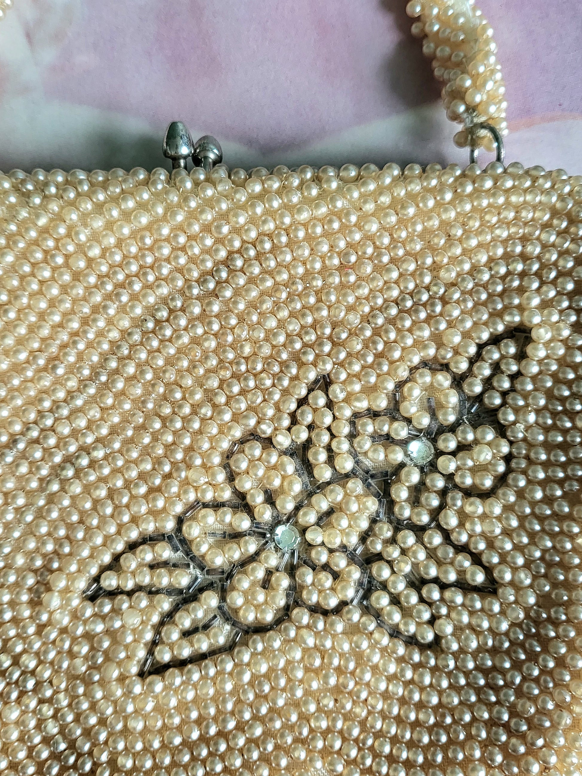 Vintage 1940's-1950's Faux Pearl Beaded Handbag