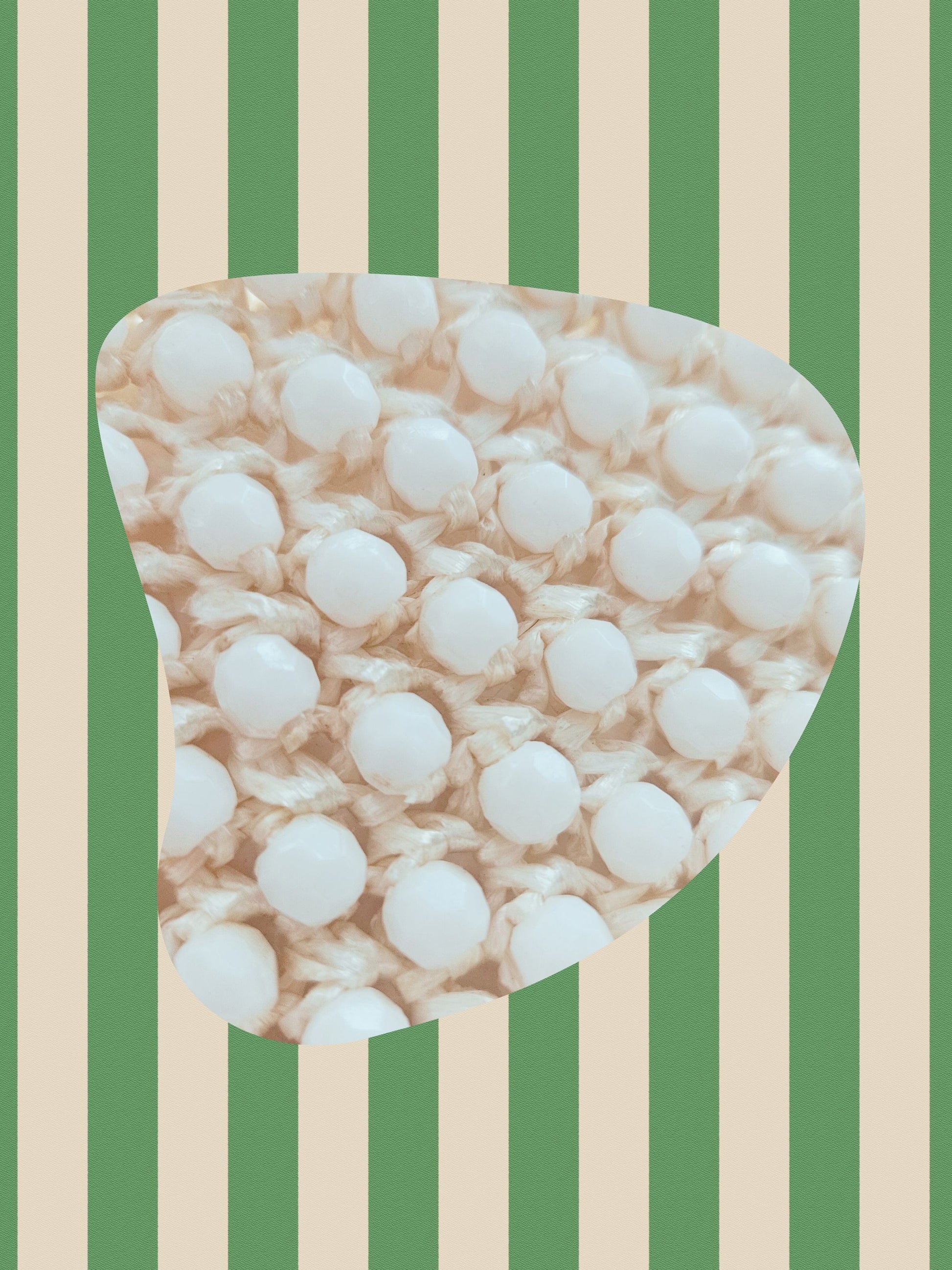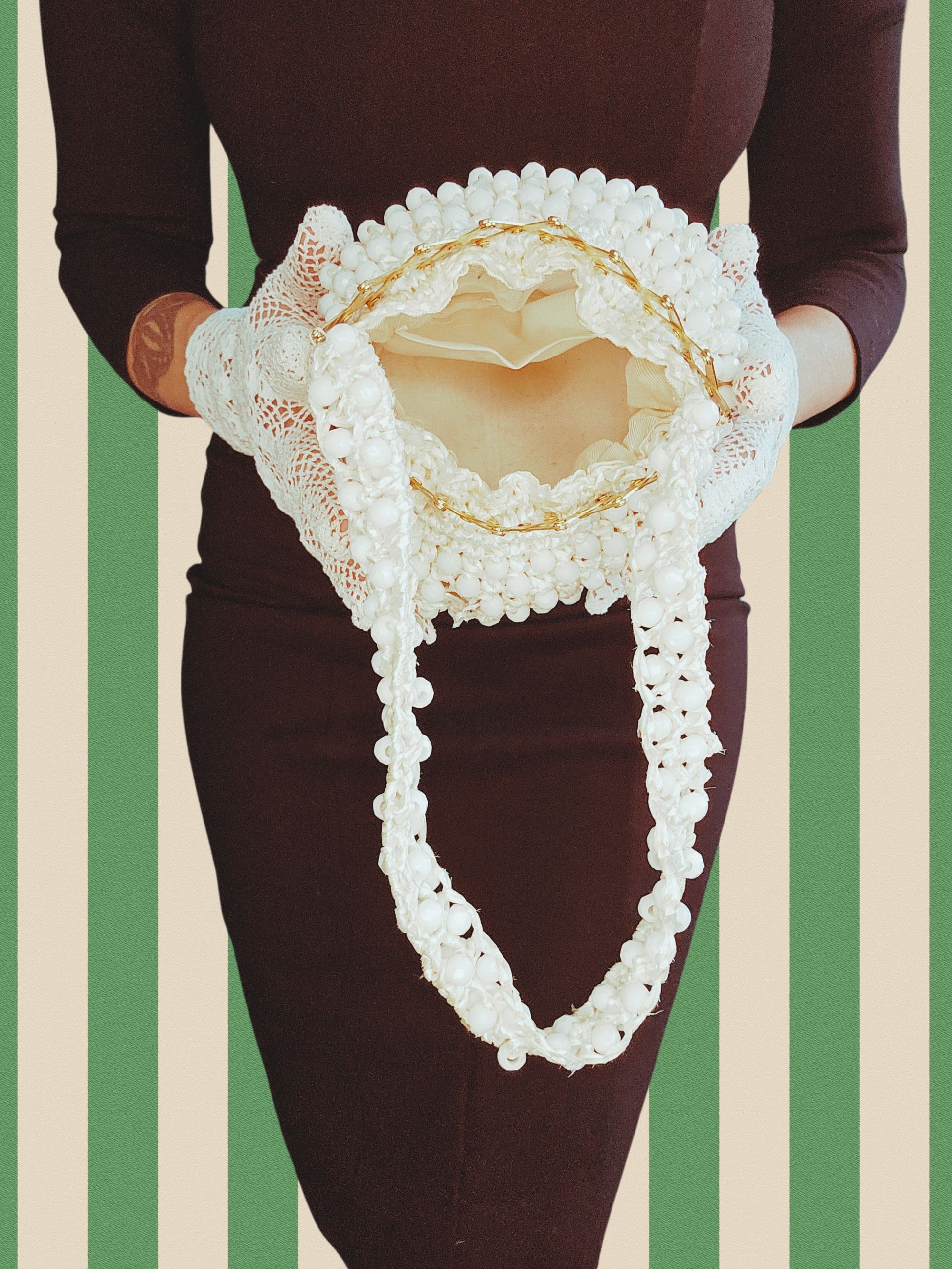 SOLD - Vintage 1950's "Le Jule" White Beaded Straw Accordion Top Bag