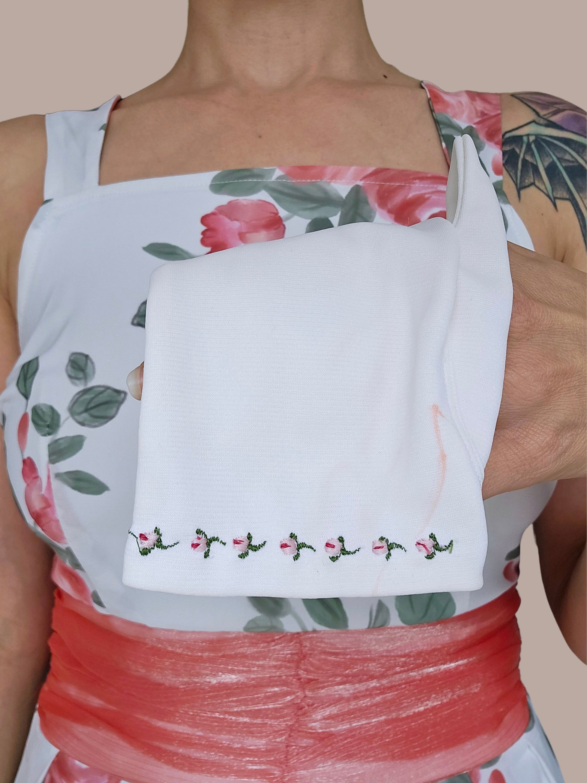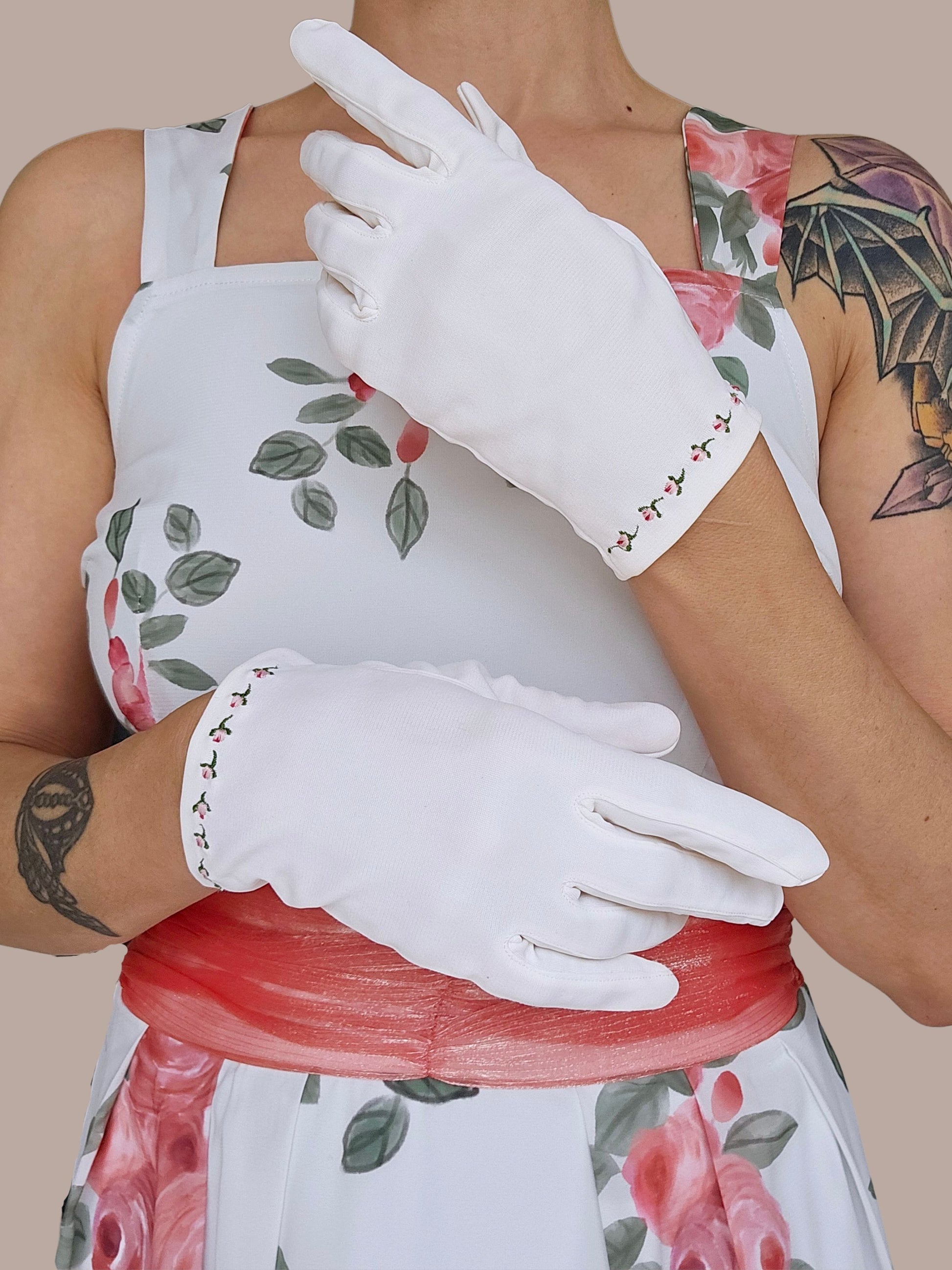 - Delicate embroidered floral wrist trim