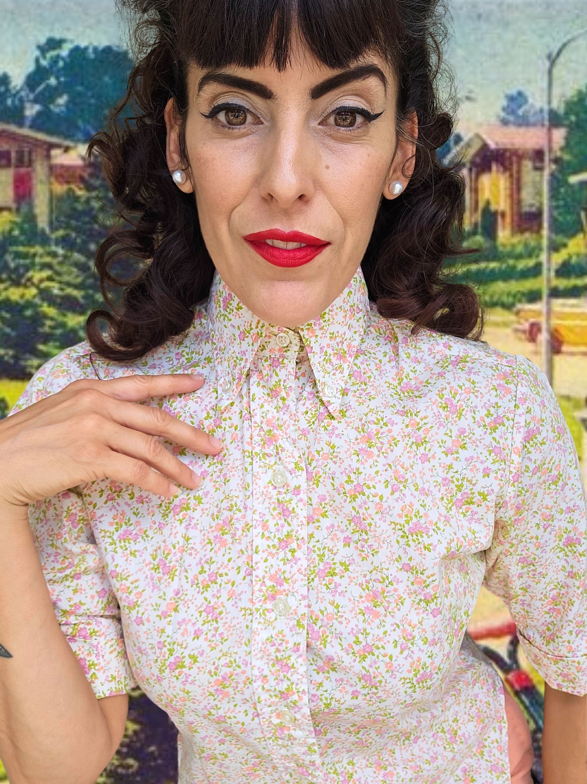 SOLD - Vintage 1950's "Cos Cob" Cotton Floral Blouse