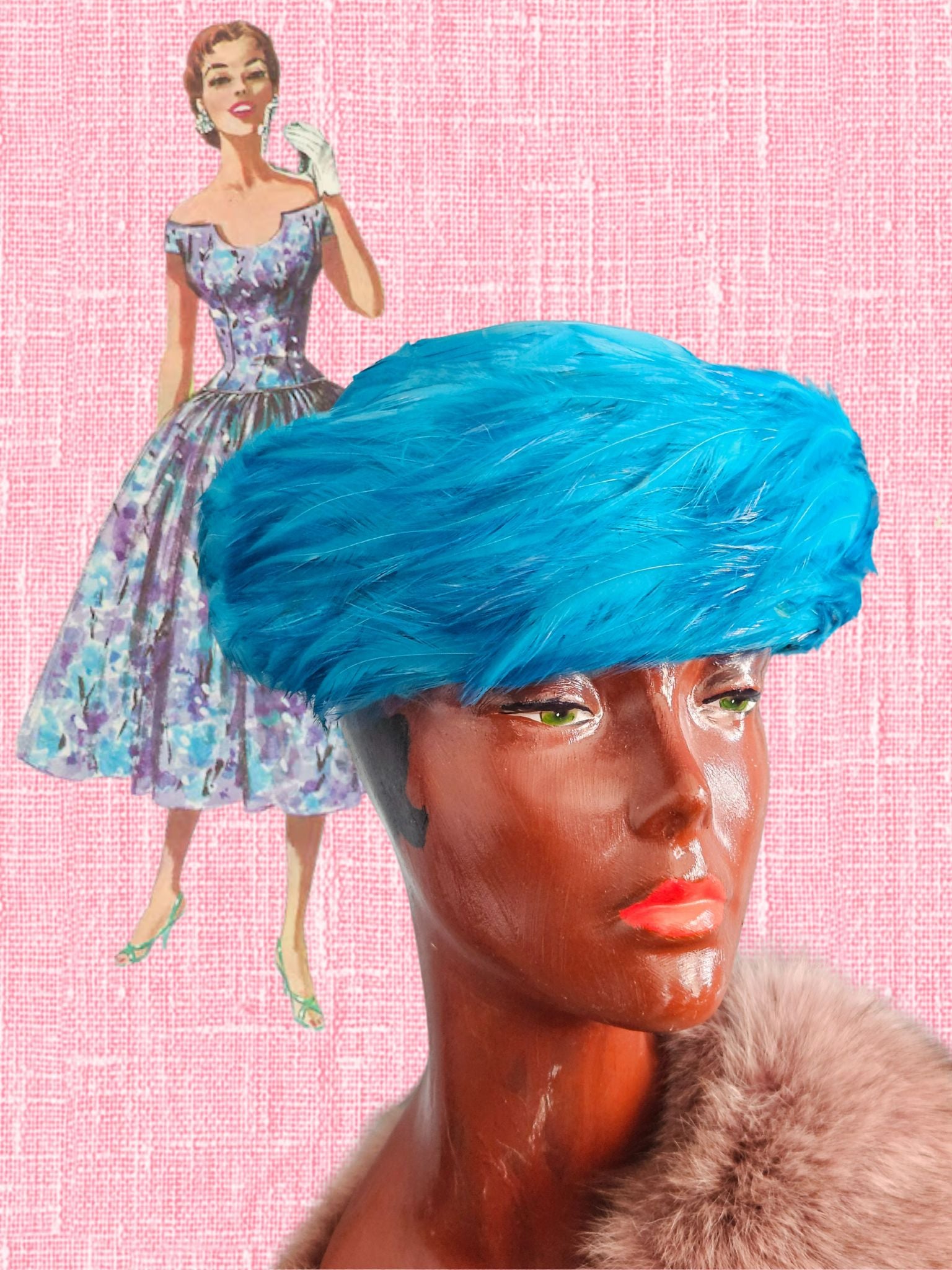 SOLD - Vintage 1950's -1960's Blue Feather Topper