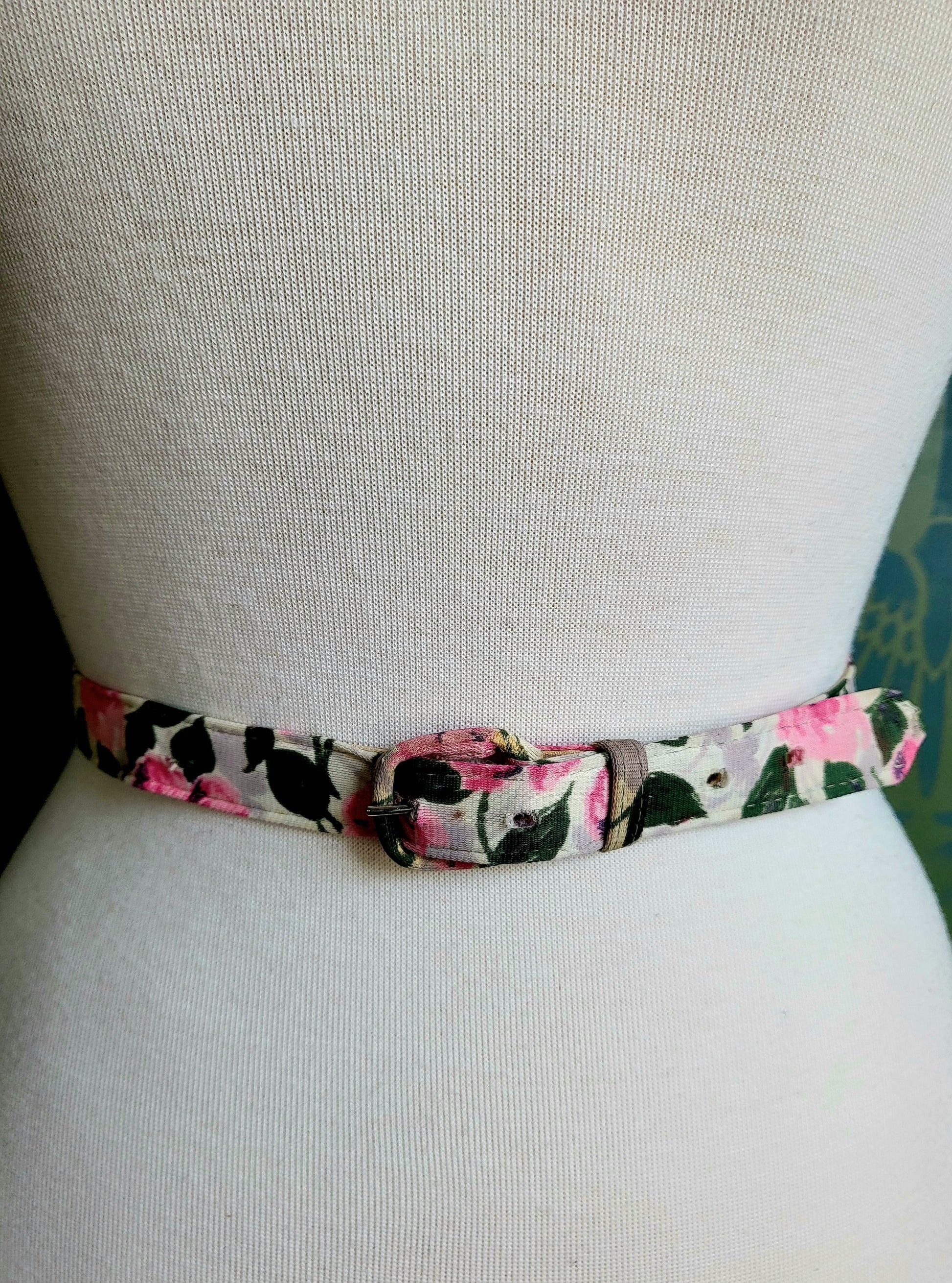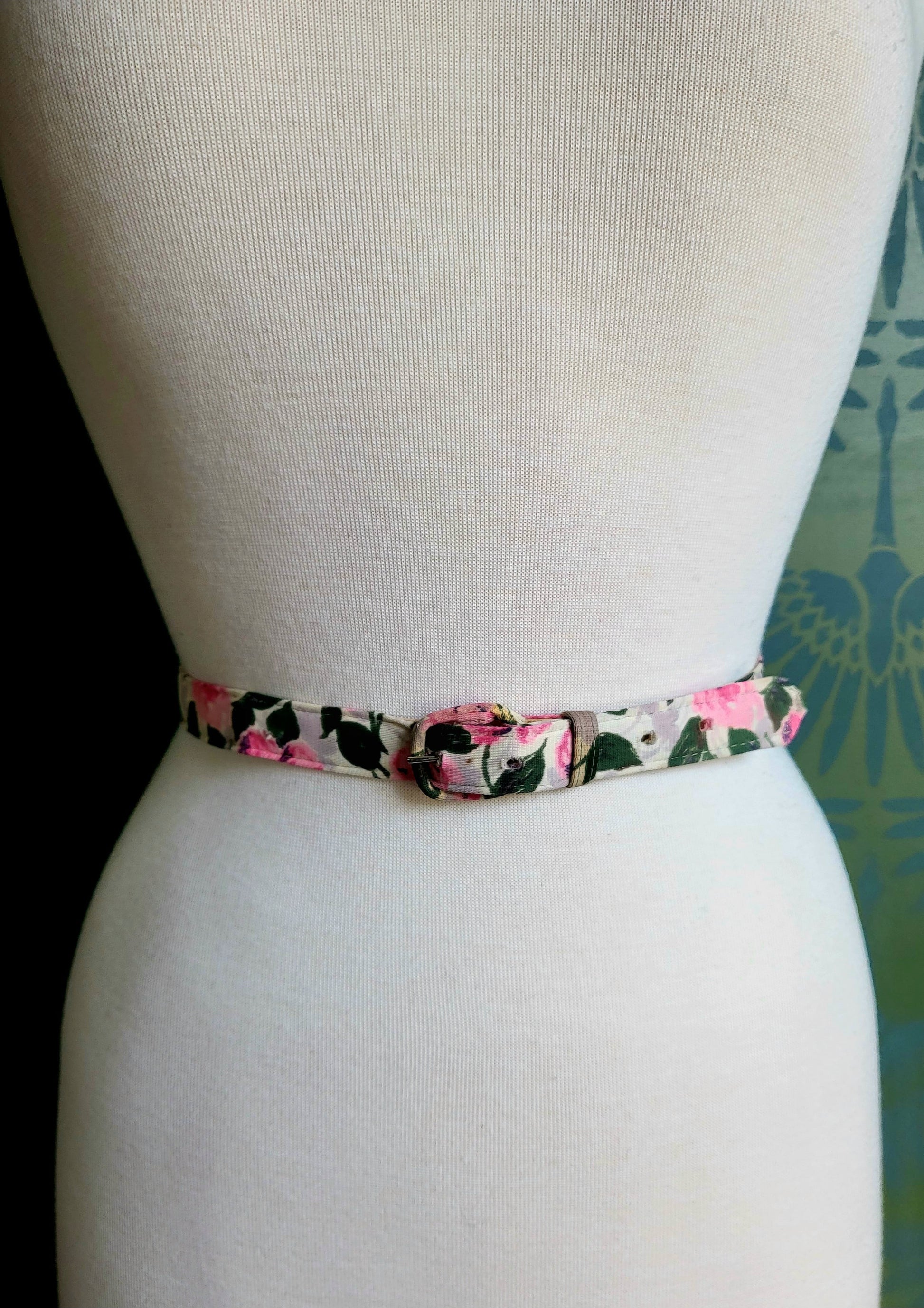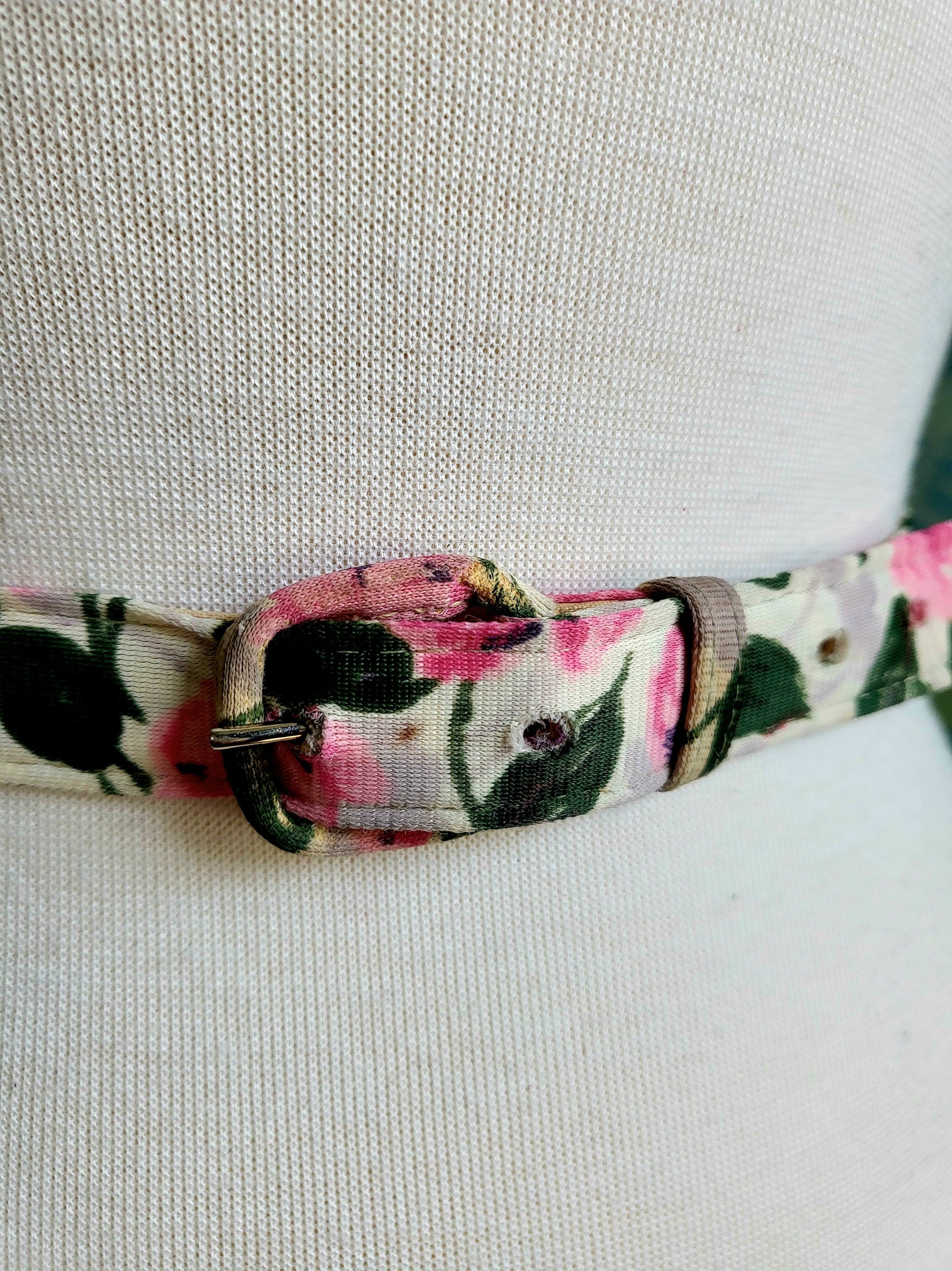 Vintage Lane Bryant "Dura Bac" Pink and Green Floral Belt